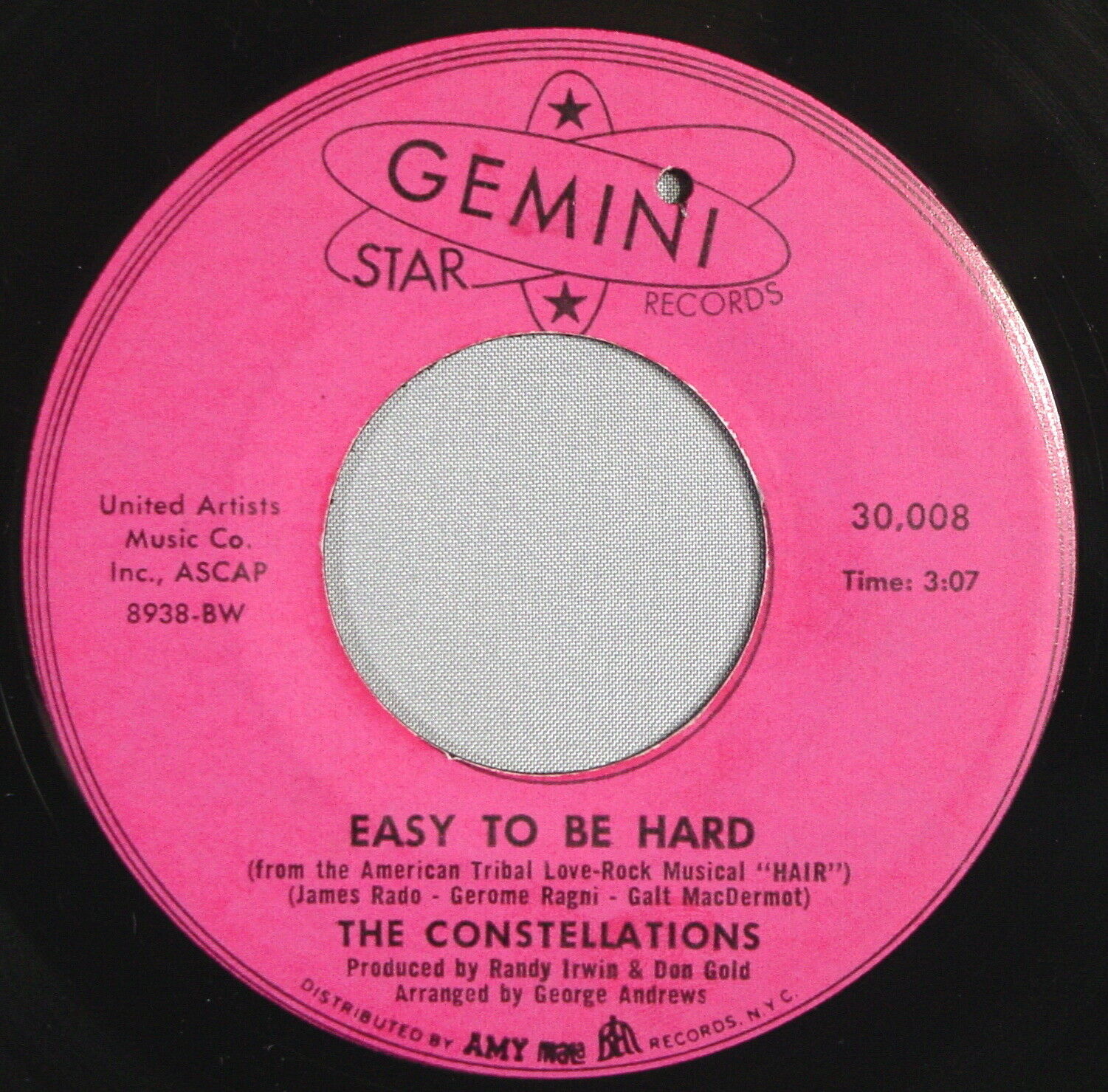 This is a RARE vintage original pressing R&B northern soul 45 rpm record GEMINI 30008 by The Constellations from 1968 in MINT PERFECT (M) CONDITION. The vinyl is clean and shiny and the sound quality is perfect. See below for more details on this grade and listen to the songs in their entirety as they were recorded directly from this record. Labels are in excellent condition with just a hint of slight surface wear. There is a drill hole. See photos.