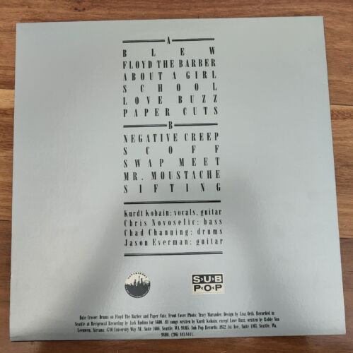 ARTIST: NIRVANA TITLE: BLEACH COUNTRY OF MANUFACTURE: AUSTRALIA CATALOGUE NUMBER: DAMP 114 RECORD GRADING: VERY GOOD + COVER GRADING: VERY GOOD + FURTHER INFORMATION: VERY RARE AND LIMITED AUSTRALIAN COPY ON BLACK VINYL . THIS IS A REALLY GOOD COPY FOR A NIRVANA COMPLETIST. IT IS ALLEGED THAT THERE WAS ONLY 50-100 OF THESE MADE AND THE COLOURED COPIES WERE MADE IN RUNS OF 500-1500
