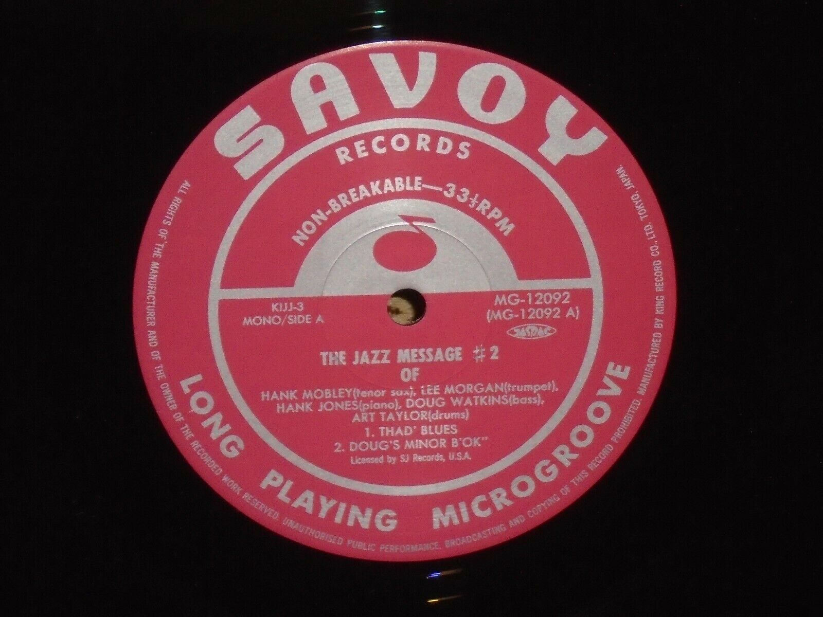 Hank Mobley The Jazz Message #2 Savoy MG 12092 NM Japanese imported pressing in NM condition. Lee Morgan, Doug Watkins, Kenny Clarke and Hank Jones all here and this is a SUPERB recording. Japanese import pressing in near perfect condition. PayPal preferred.