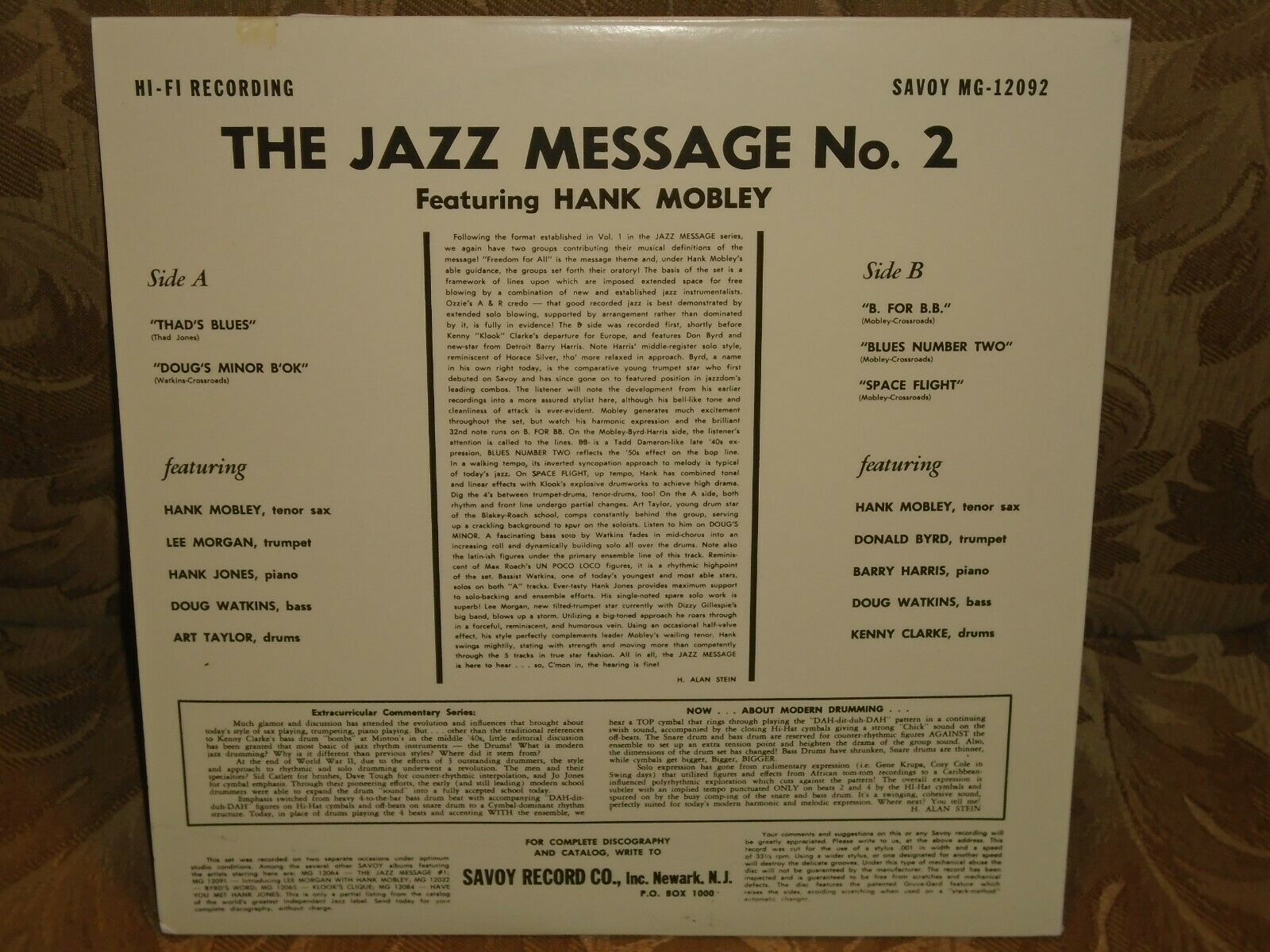 Hank Mobley Jazz Message #2 Savoy MG 12092 Lee Morgan Doug Watkins Kenny Clarke