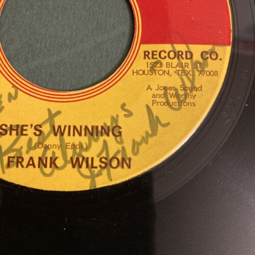 J. Frank Wilson “She’s Winning” Master Autograph Label Ex 45 Rpm Soul R&B