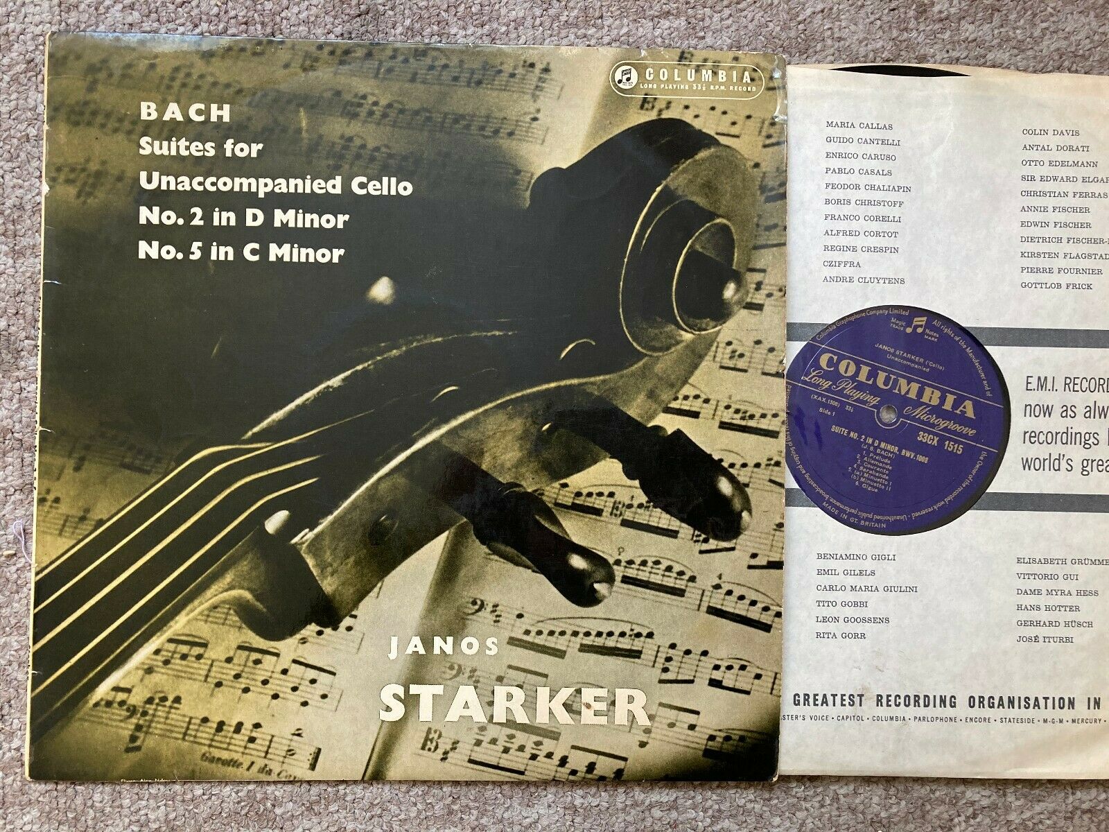 JANOS STARKER • BACH • SOLO CELLO SUITES 2 & 5 • 1958 UK COLUMBIA 33CX 1515