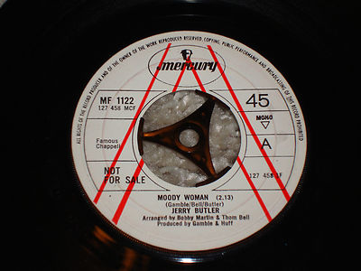 ANOTHER ONE OF MY MUMS RARE NORTHERN SOUL DEMOS SHE SAYS IT IS VERY VERY RARE JERRY BUTLER MOODY WOMAN MERCURY DEMO MF1122 EXCELLENT CONDITION CLEAN LABELS MUM SAYS THE LAST ONE TO GO ON HERE WENT FOR £184 SHE SAYS CHECK POPSIKE SHE HAS SAID PUT ON FOR 1/2 THAT PRICE SO BUY IT NOW £89.99 OVNO AND DONT FORGET FREE POSTAGE CHEERS JACKIE