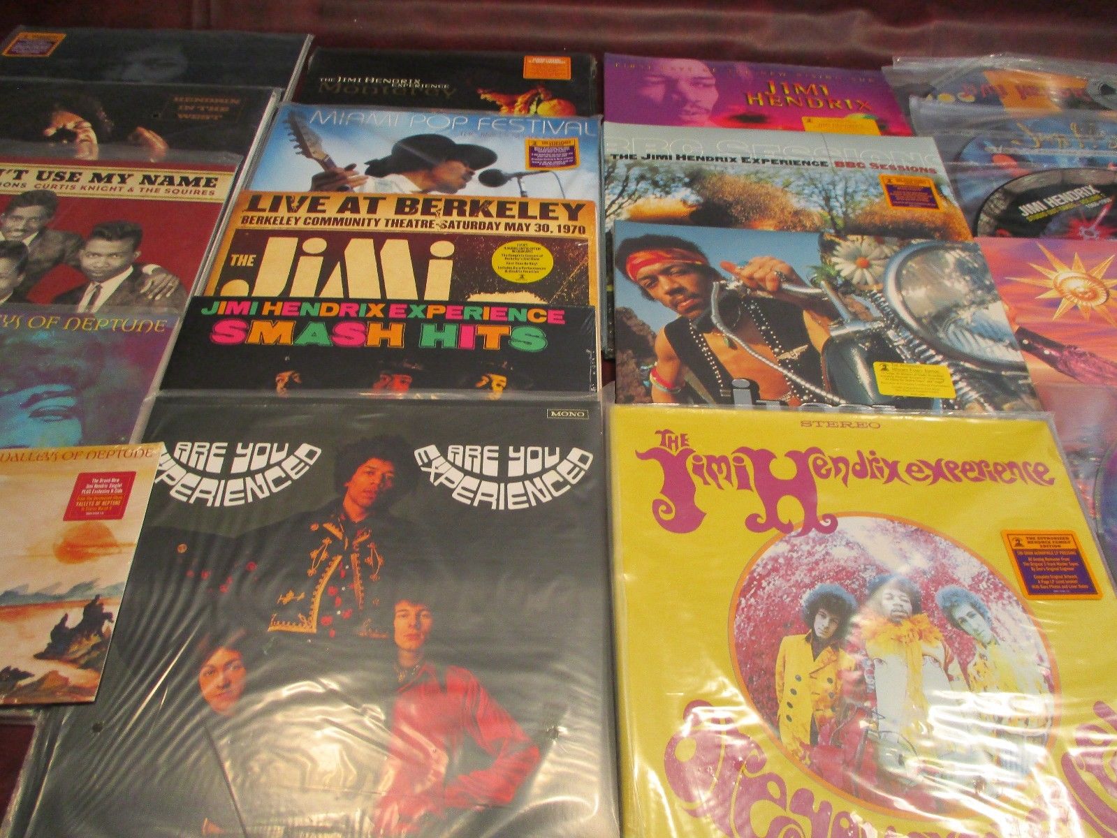Jimi Hendrix people, Hell and angels - Curtis Knight and the Squires featuring Jimi Hendrix - in from the Storm picture disc live tribute - The Hendrix songbook - Valley of Neptune single - Merry Christmas and a happy new year Single - Capitol records Band of Gypsys Jimi Hendrix, Noel Redding & Mitch Mitchell part 1 & 2 - Axis Bold as love Japan 200g Stereo - The Experience Sessions 200G Classic records - the 5 No. Picture Disc Concerts. $500