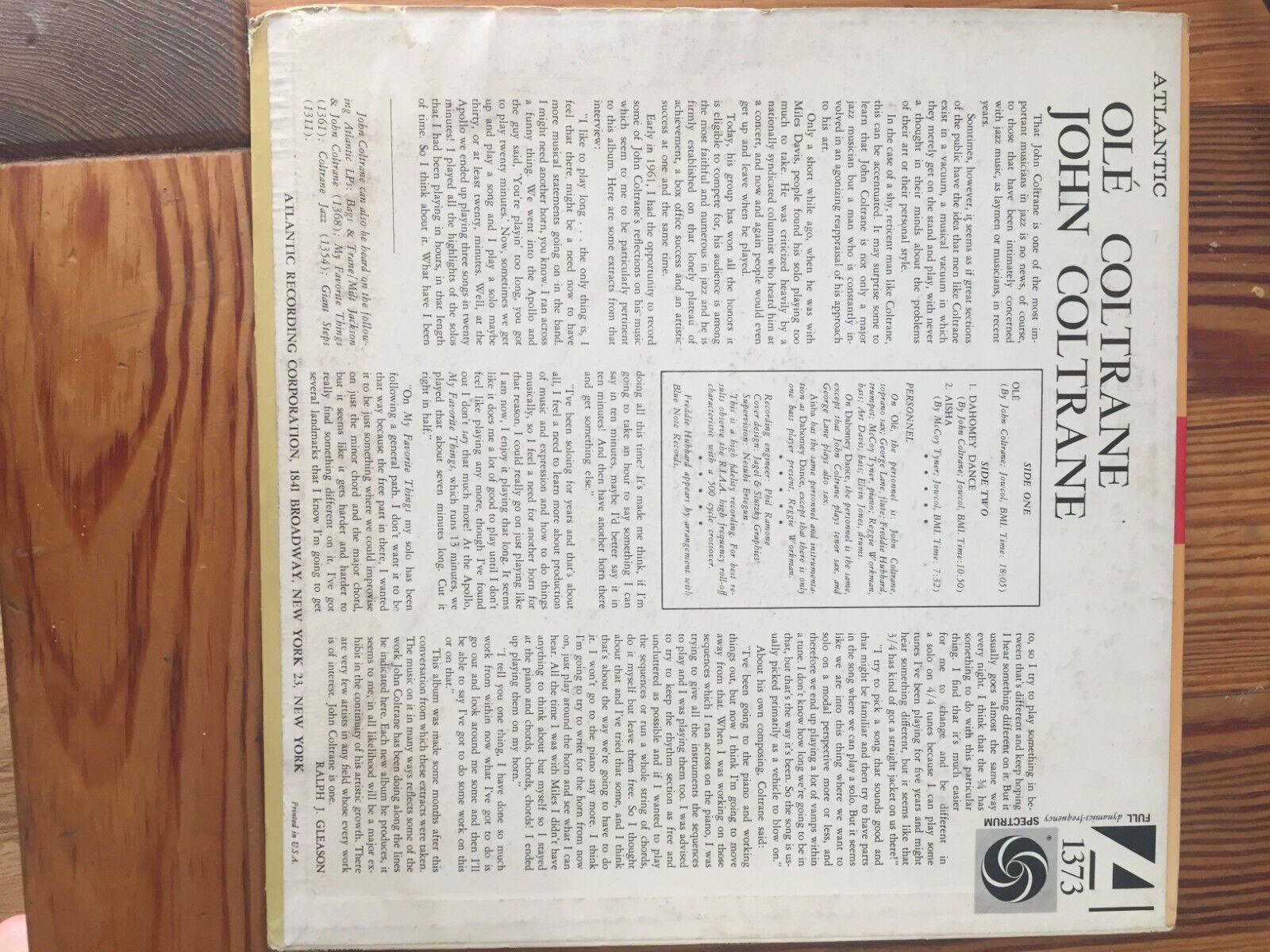 JOHN COLTRANE - Olé COLTRANE . ATLANTIC 1373 MONO.RED/ PURPLE.