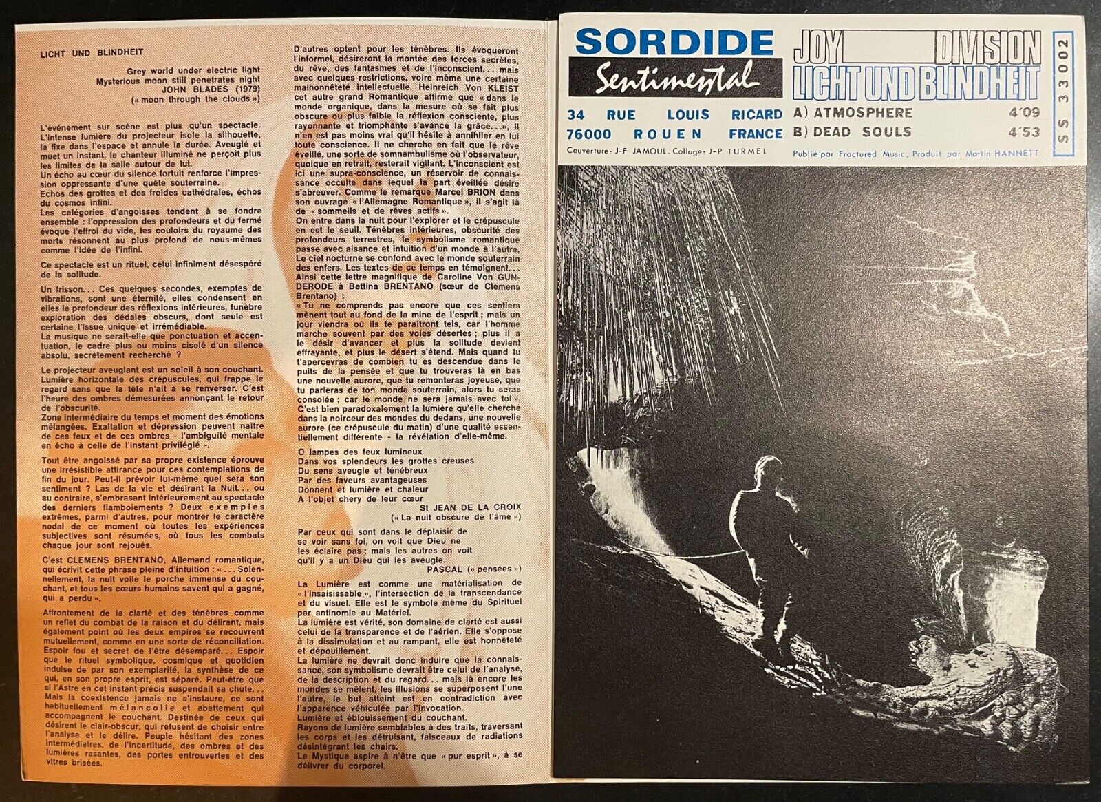 JOY DIVISION LICHT UND BLINDHEIT ATMOSPHERE 1980 1ST SORDIDE SENTIMENTAL EX+