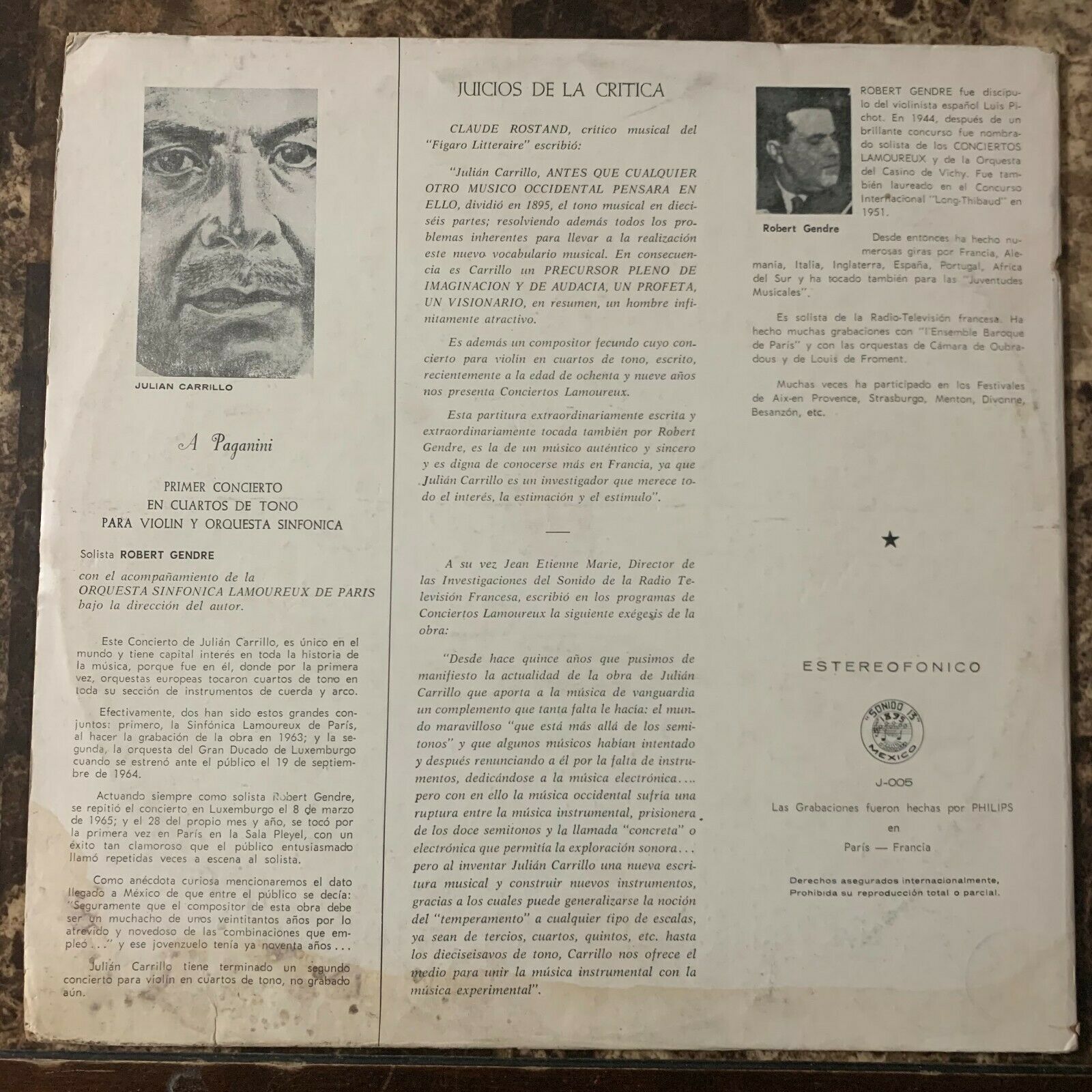JULIAN CARRILLO -PRIMER CONCIERTO EN CUARTOS DE TONO PARA VIOLIN Y ORQUESTA- 1963 VERY RARE MEXICAN LP STAINED COVER CLASSICAL