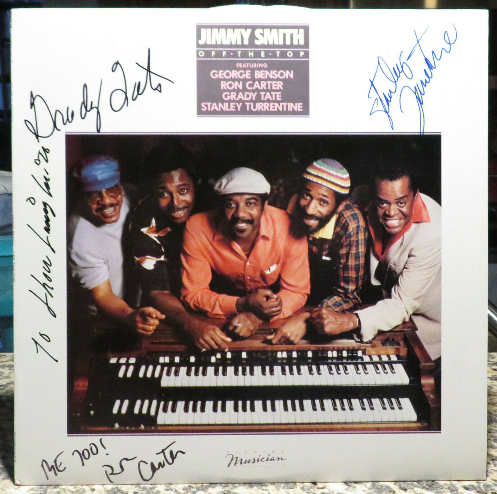 Jimmy Smith, Stanley Turrentine, Ron Carter, Grady Tate ALL signed autographed Elektra Musician LP "Off the Top". All musicians signed when I lived in the Washington, DC area during the 1970s and 80s. I am selling my signed music memorabilia and other signed music collectibles, please check eBay for further listings. Pictures part of the description. Kept in a pet and smoke free environment. Will combine multiple winnings and refund postage over payment.