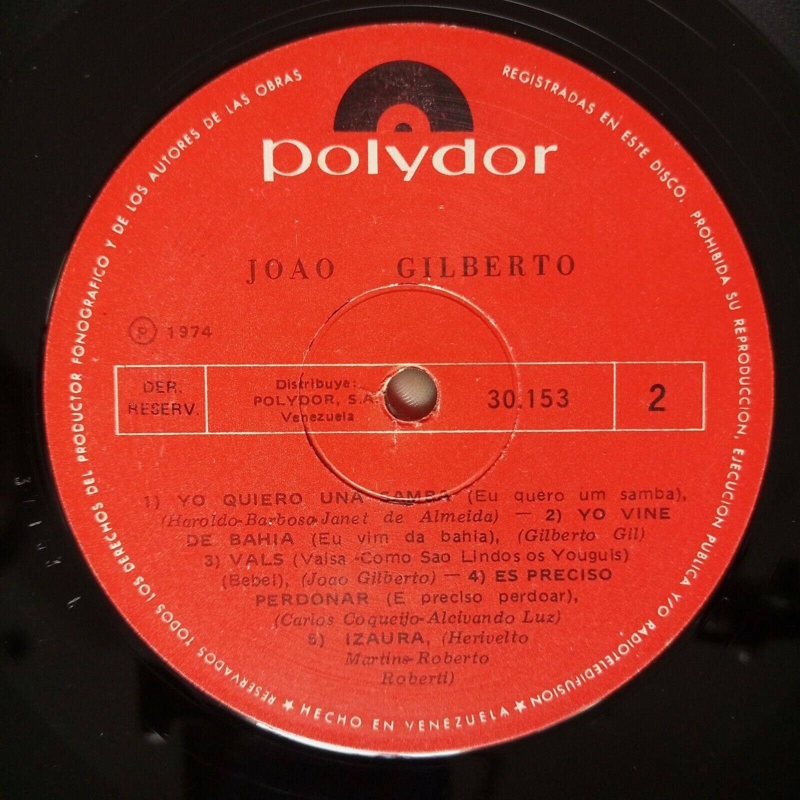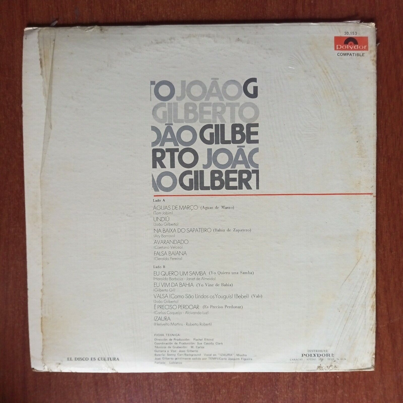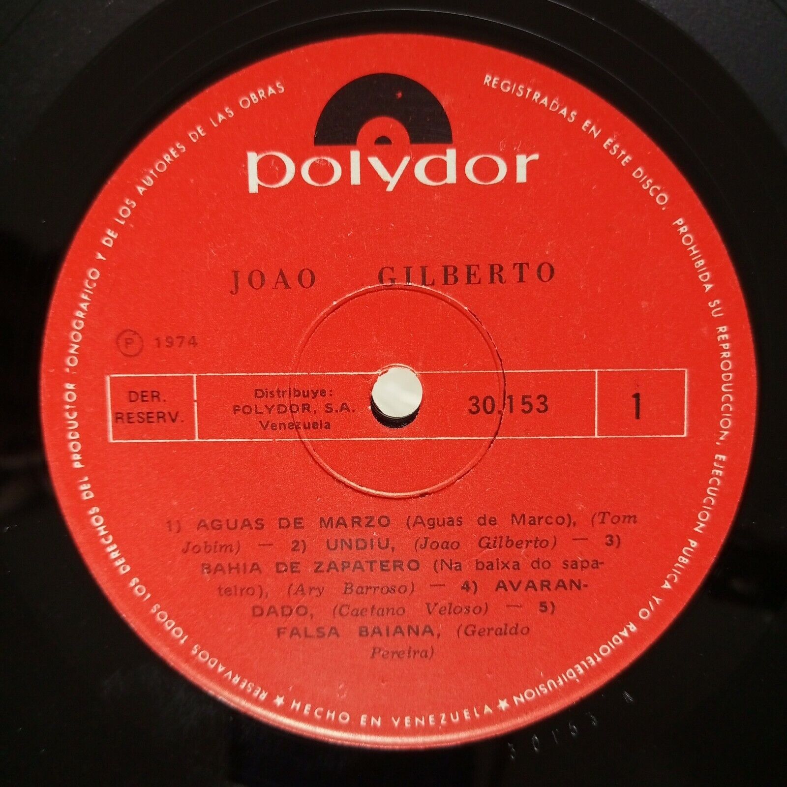 Joao Gilberto [1974] Vinyl LP Jazz Bossa Nova Polydor Records Aguas Março