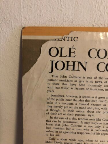 John Coltrane - Olè Coltrane - LP 33 UpM - Zustand des Vinyls: Sehr Gut, auf der Coverrückseite sind rechts /links oben kleine Papierabrisse (siehe Fotos)