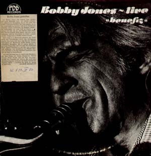 LP , 1973, FDB Records, no.No., DE orig. - very rare Private private pressing, 1 small scratch B2 causes 10 soft ticks, otherwise NM - kl.Kratzer auf B2 macht ca. 10 leichte HIntergrundklicks, sonst prima - cutout of Newspaper article reporting Bobbys death pasted on front-cover / SZ Artikel vom 9.3.1980, indem über über Bobby´s Tod berichtet wird ist vorne aufgeklebt - Moderate ringwear / unten Ringwear, Kanten berieben "Diese Platte wurde von FDB Records unter Berechnung der Materialkosten für Bobby Jones als Lebenshilfe erstellt" Helmut Viertl - According to Joe Viera only 500 pcs made / Lt.Prof. Joe Viera wurden nur 500 Stück davon gepresst.