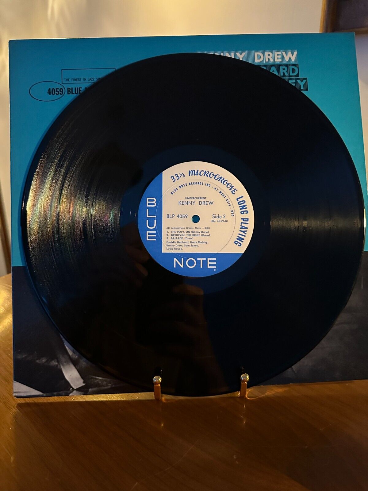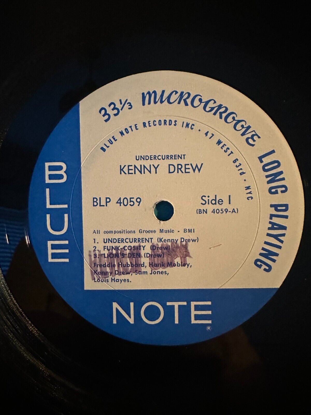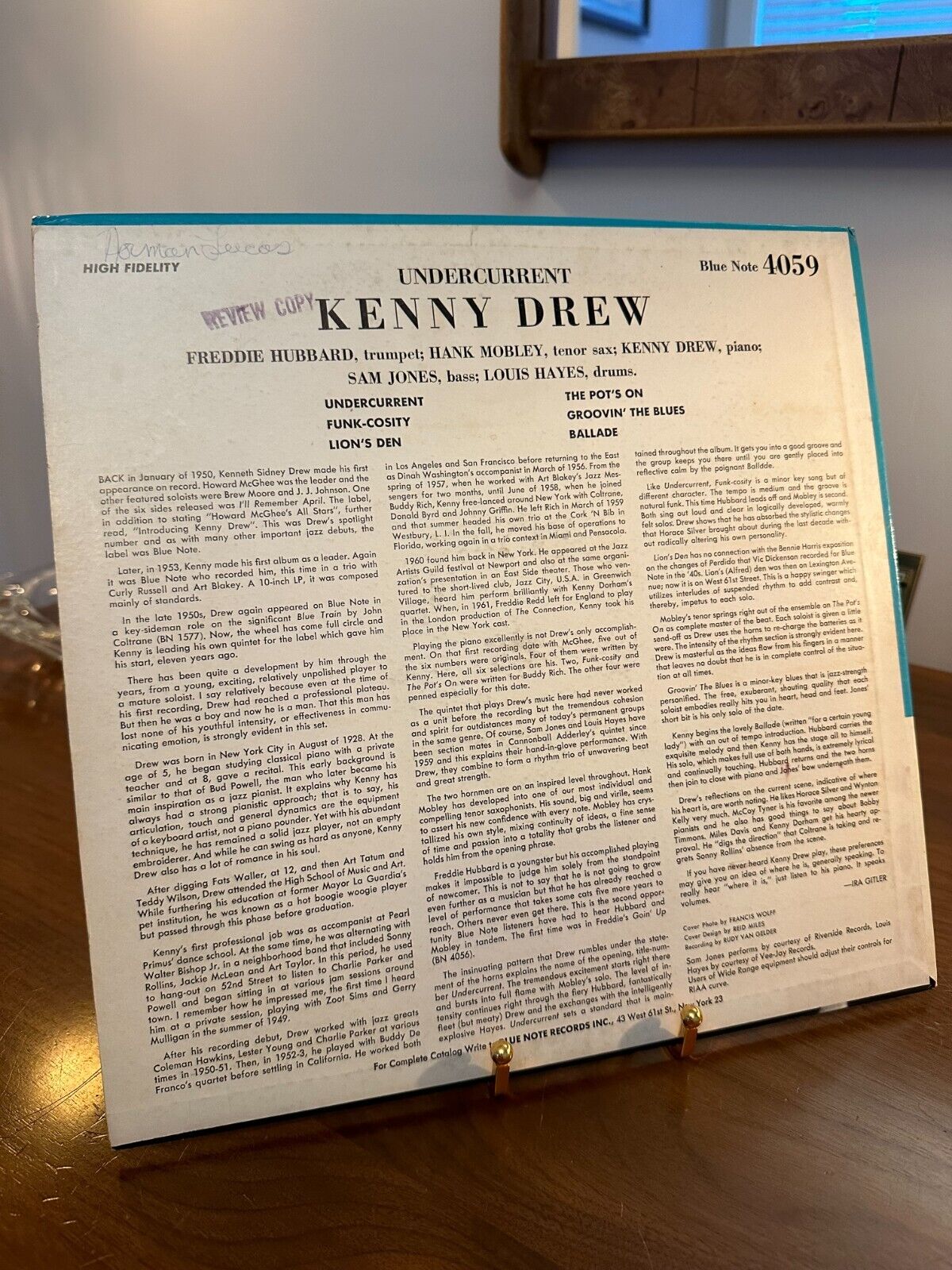 FIRST PRESSING & REVIEW COPY of Kenny Drew Undercurrent BLP 4059 MONO with RVG stamp and Ear stamp. BN-LP 4059 A and B in dead wax. Jacket is in VG++ shape with no tears, no ring wear, no signs of use. Has REVIEW COPY STAMP on cover and on inner label. Has a light name in pen (assuming it may be the writer) shown in the picture. Vinyl is also VG++ with high sheen, no scratches, no signs of wear, super clean. Vinyl looks fantastic! This was probably played 2-3 times and put away. Has original Blue Note sleeve, with minor wear.