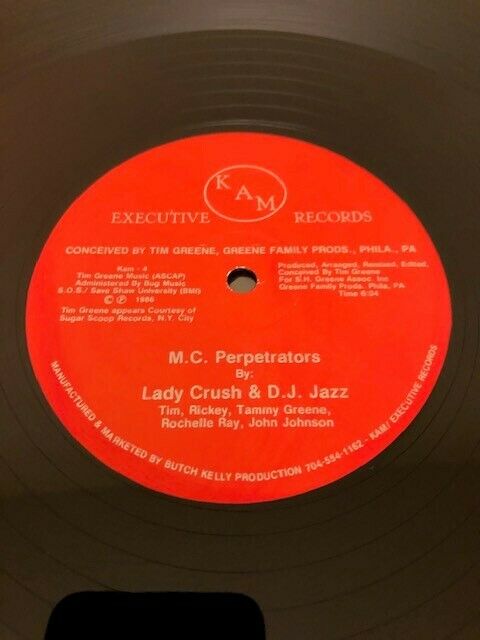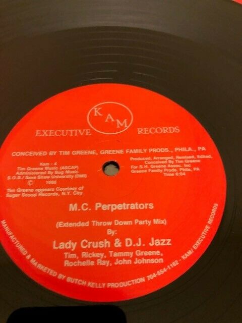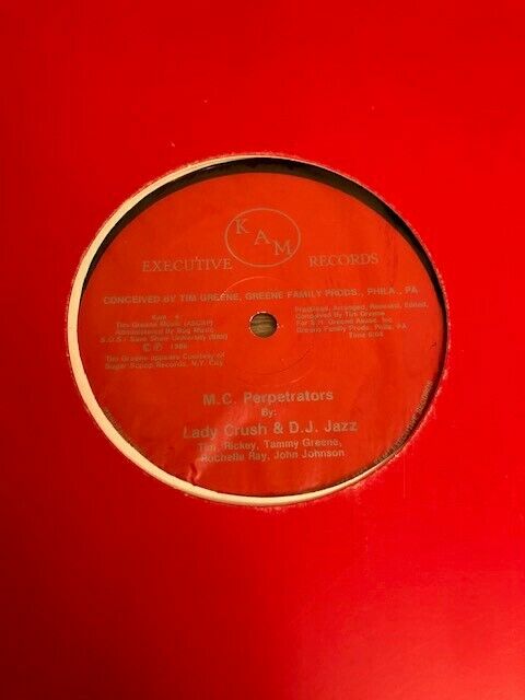 RARE HARD TO FIND WITH THE ORIGINAL RED COVER. PLAYS LOUD ALL THE WAY THROUGH ON BOTH SIDES!!!! CONDITION: VG+ ARTIST: LADY CRUSH & DJ JAZZ & TIM GREENE LABEL: KAM EXECUTIVE MC PERPETRATORS/MC PERPETRATORS (EXTENDED THROWDOWN PARTY MIX)