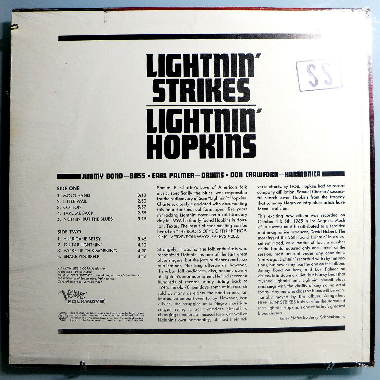 · LIGHTNIN’ HOPKINS - LIGHTNIN' STRIKES - ORIGINAL 1965 VERVE/FOLKWAYS MONO LP FV-9022 (THIS IS NOT A VERVE/FORECAST REISSUE WITH A CATALOG NUMBER FT/FTS-3031)