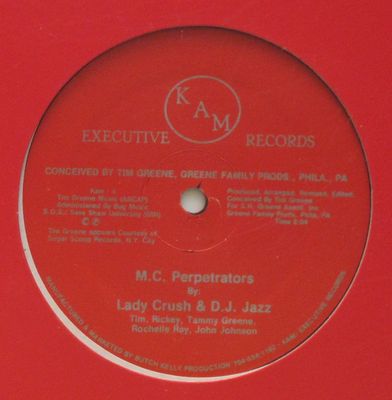 Lady Crush & DJ Jazz M.C. Perpetrators b/w M.C. Perpetrators (Extended Throw Down Party Mix) (KAM Executive) US pressing, regular issue copy