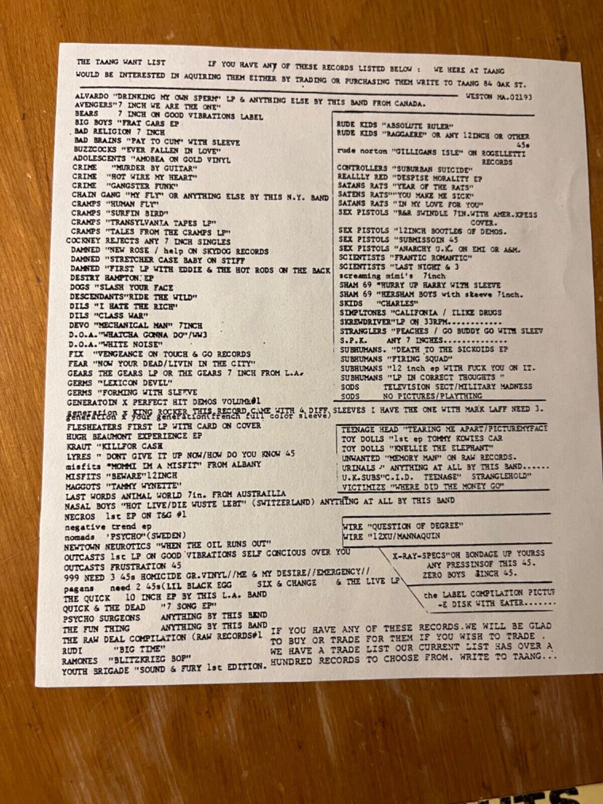 Original 1984 copy of Chunks/So Ends Our Night on Taang! Records.