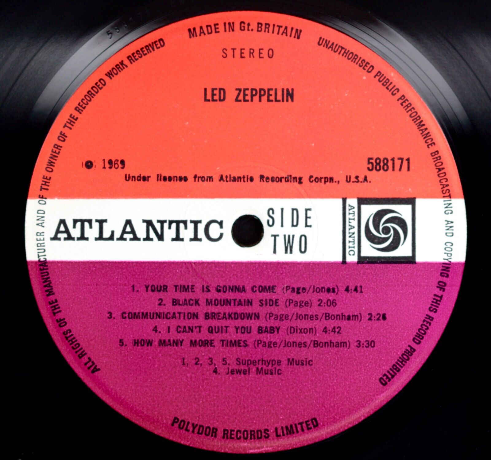 Although musically epic, the album is perhaps sought-after most by collectors for the iconic sleeve. Designed by George Hardie, the cover image depicts the Hindenburg airship (built by the Zeppelin company) engulfed in a fireball during the Hindenburg Disaster. A reference to the band members’ opinion of their chances of success. The sleeve included with the album for sale in this listing is the extremely rare and highly desired first variant in which the album title and Atlantic label logo are coloured turquoise. Although exact numbers are unknown, it is thought that between 500 and 1000 of this variant were produced before the design was changed to the second variant in which the lettering is orange. This is a historically significant piece of music memorabilia and a must have in any archivist/investment collection.