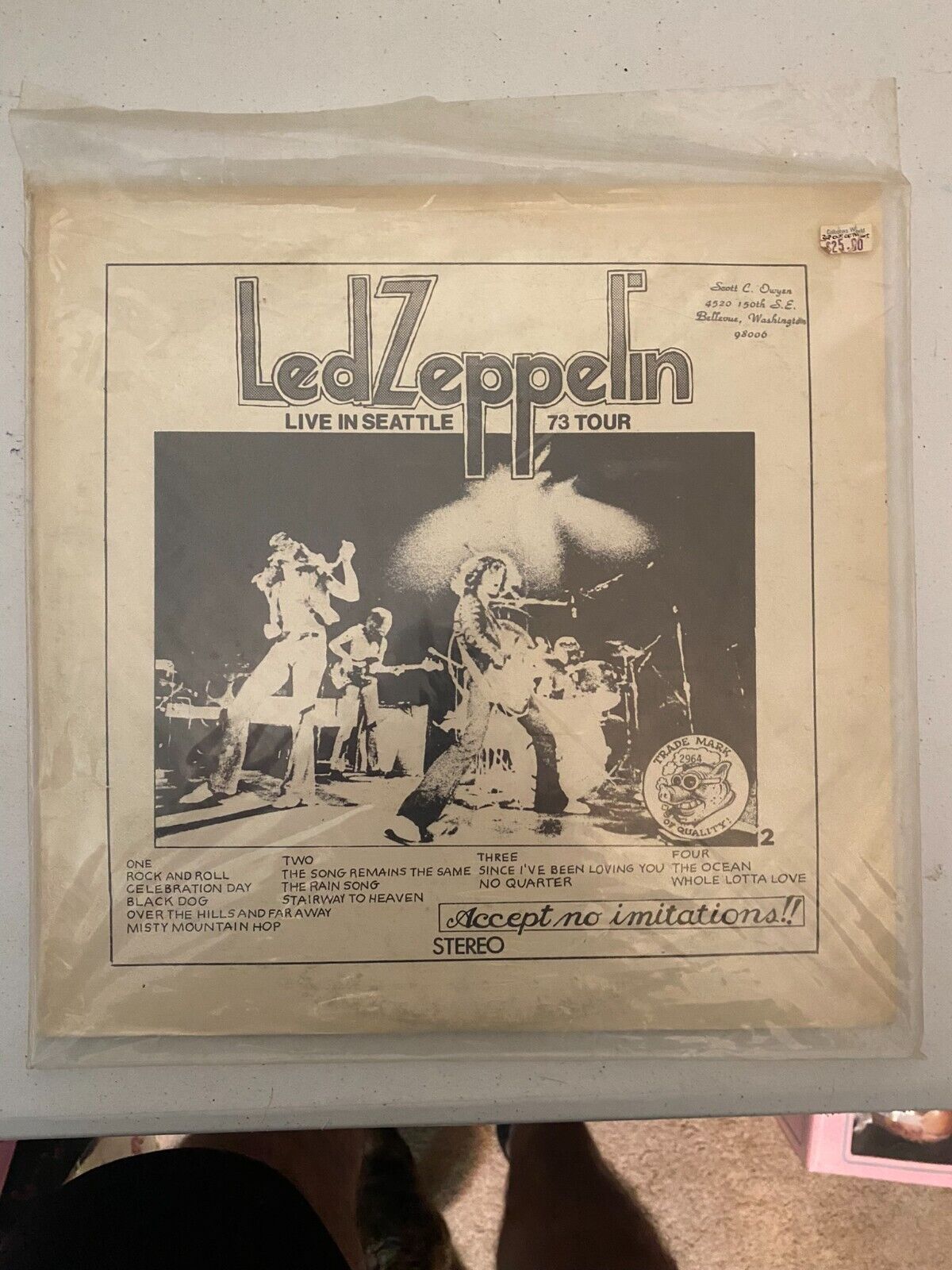 Please note that this listing includes the Led Zeppelin Live In Seattle 73 Tour - 2 LP Double Vinyl Records set, still in its original clear plastic sleeve with the store price tag.