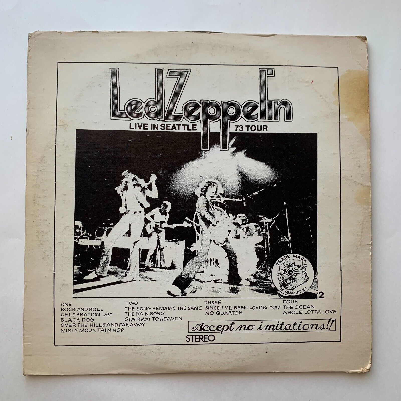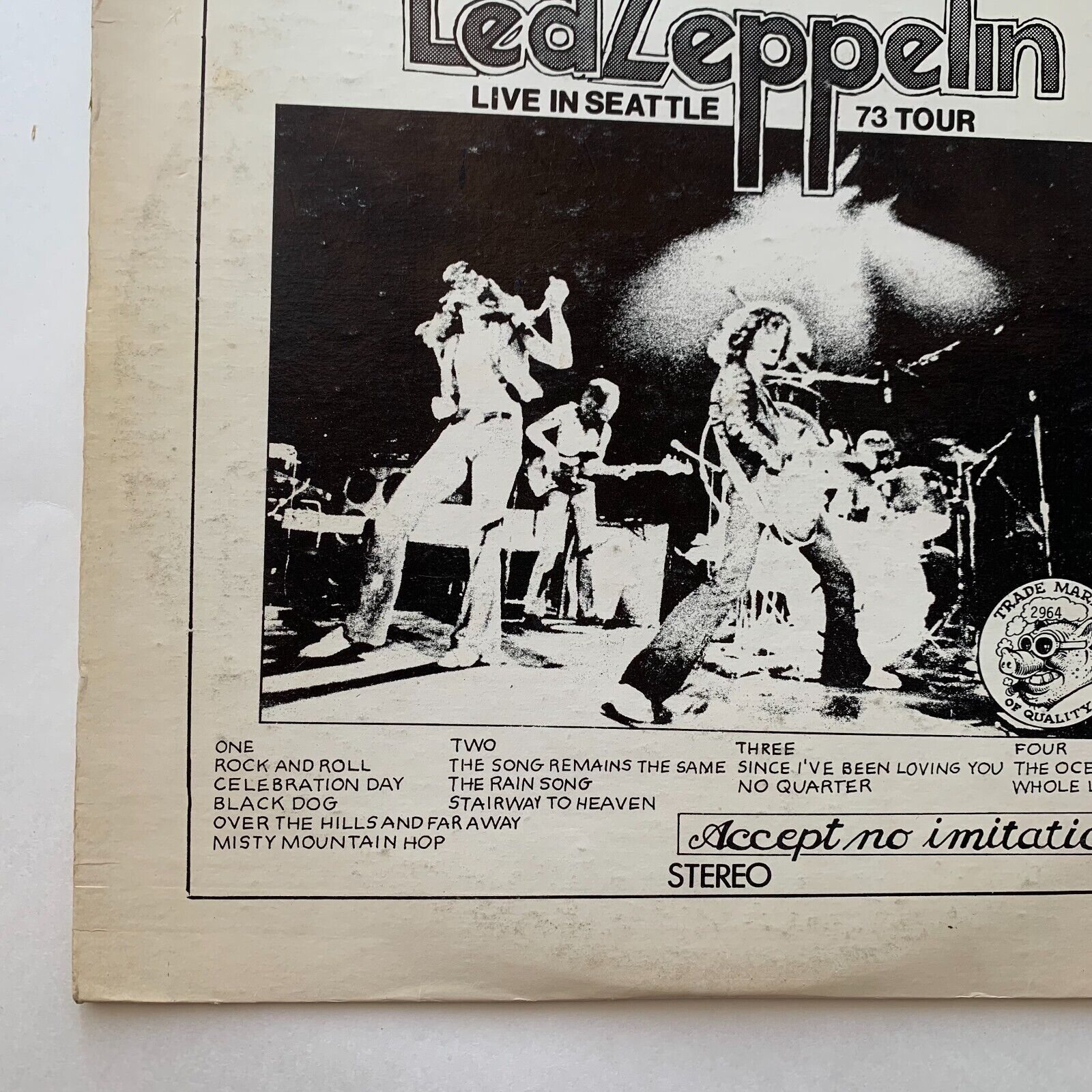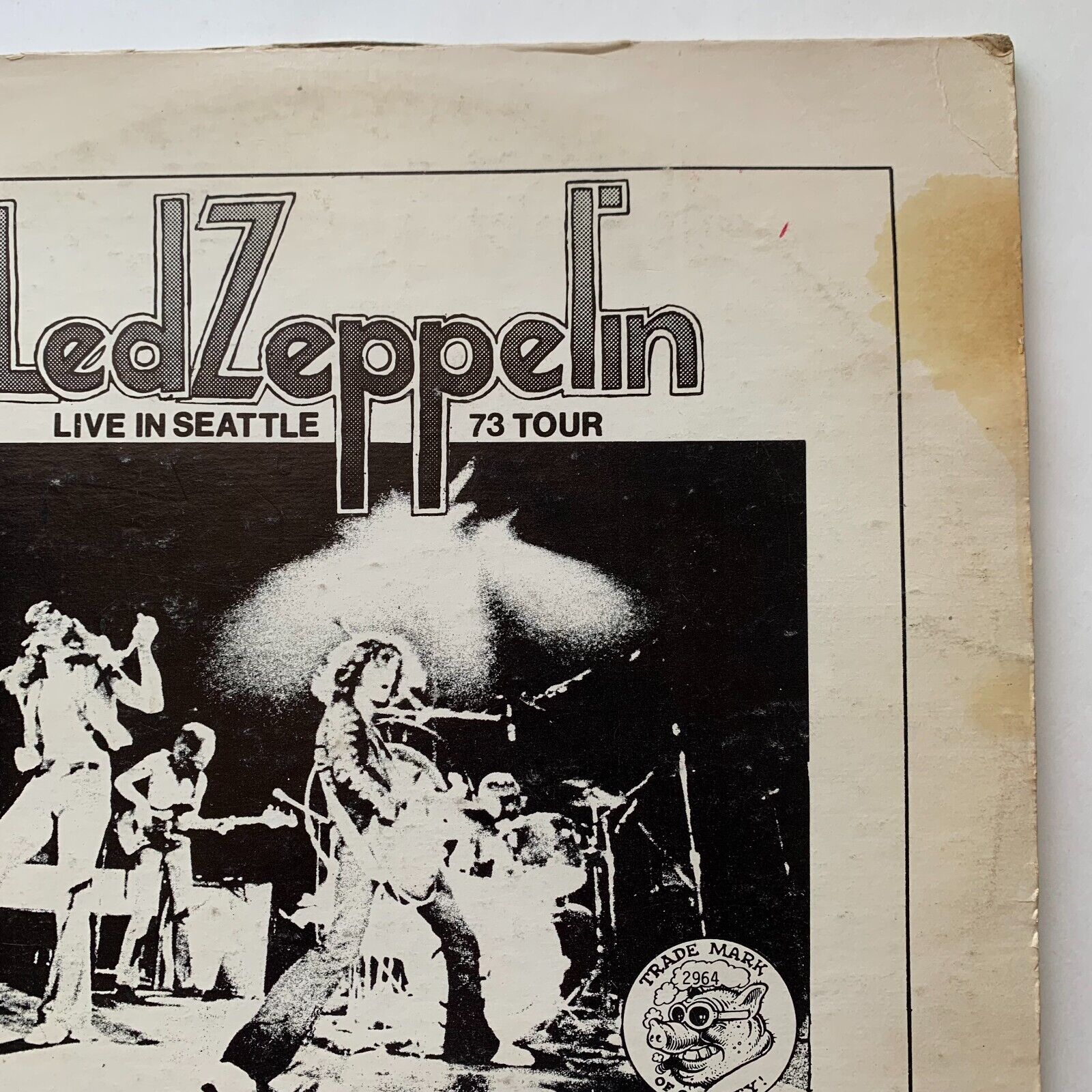 Led Zeppelin Live In Seattle 73 Tour 2 LP Double Vinyl Records 12" There is wear/damage to cover. Top seam is split. Please see all photos. Records are in excellent condition. No noticeable scratches. Comes with a flyer for another show/record