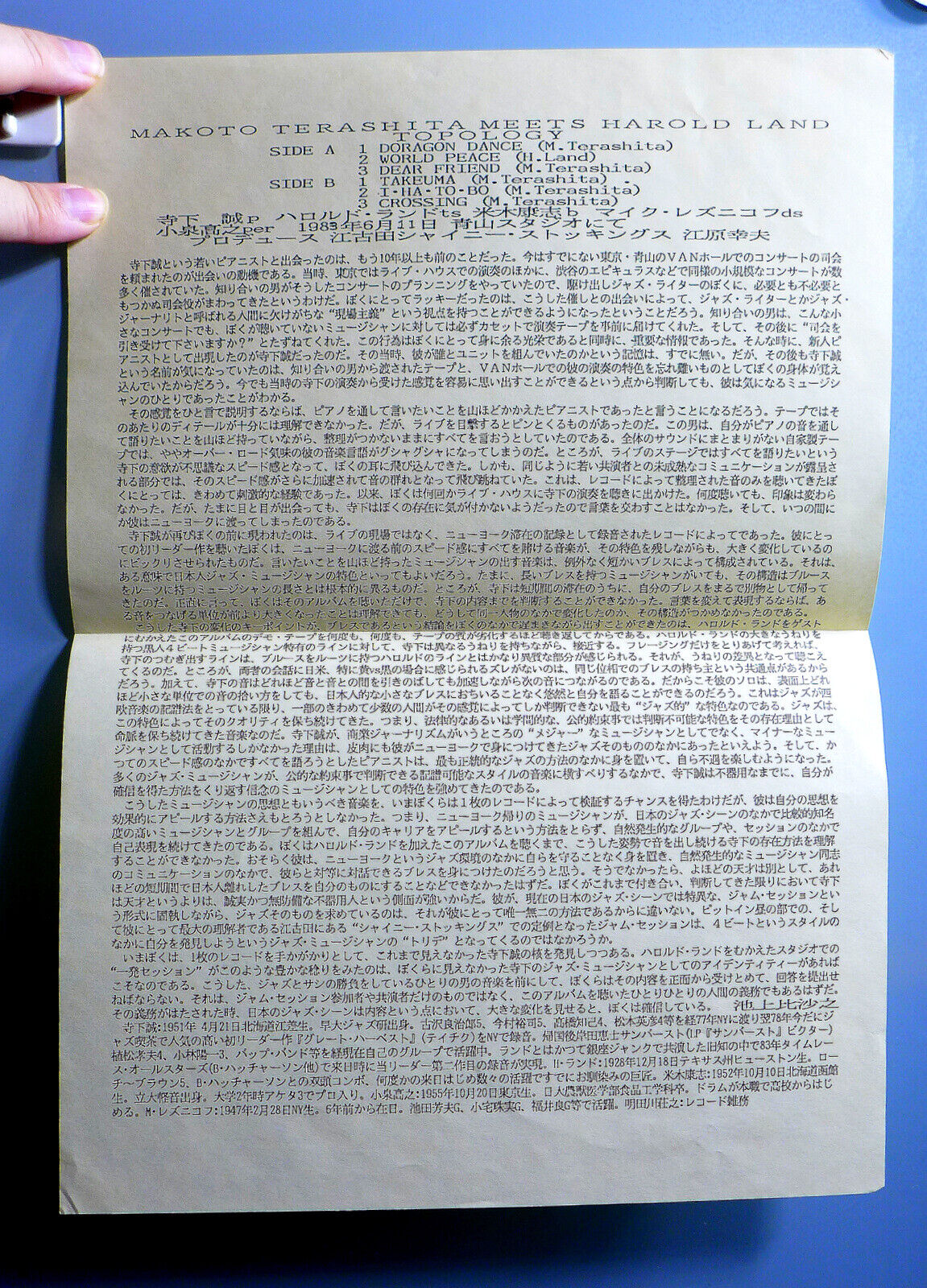MAKOTO TERASHITA MEETS HAROLD LAND TOPOLOGY INSANELY RARE ORIG'84 JAPAN-ONLY LP