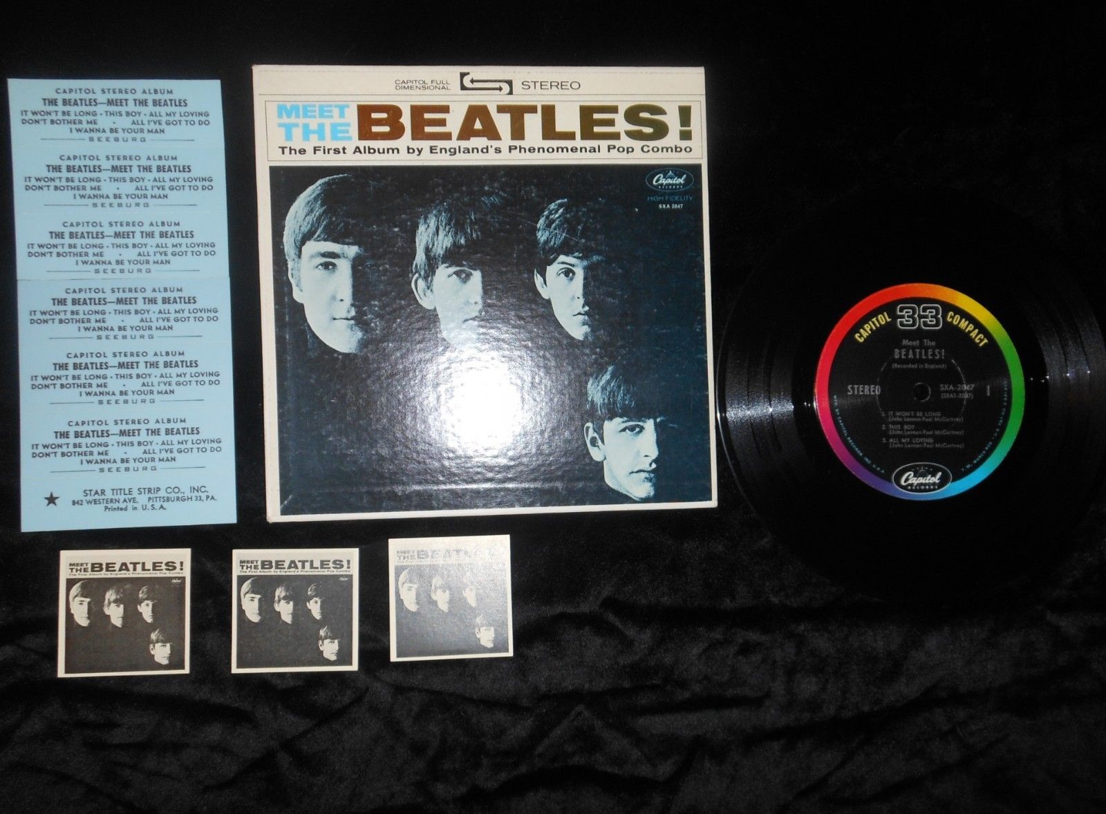 MEET THE BEATLES CAPITOL COMPACT 33 SXA-2047 JUKEBOX EP WITH MINI LP'S & STRIPS