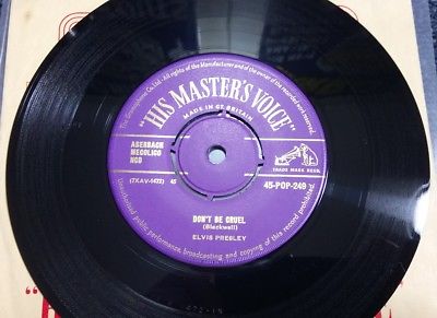ELVIS PRESLEY - HOUND DOG / DON'T BE CRUEL - HMV POP 249 --- TOP MINT COPY --- LABELS PERFECT UNFADED DARK MAUVE & DAZZLING GOLD PRINT --- ULTRA RARE TO FIND THIS NICE --- PLAYS MINT TOO. ONE SO HIGH GRADE IT'S SCARY. MAKE IT YOURS --- ANY MARKS ON THE RIGHT EDGE ARE FROM THE DESK LAMP REFLECTIONS