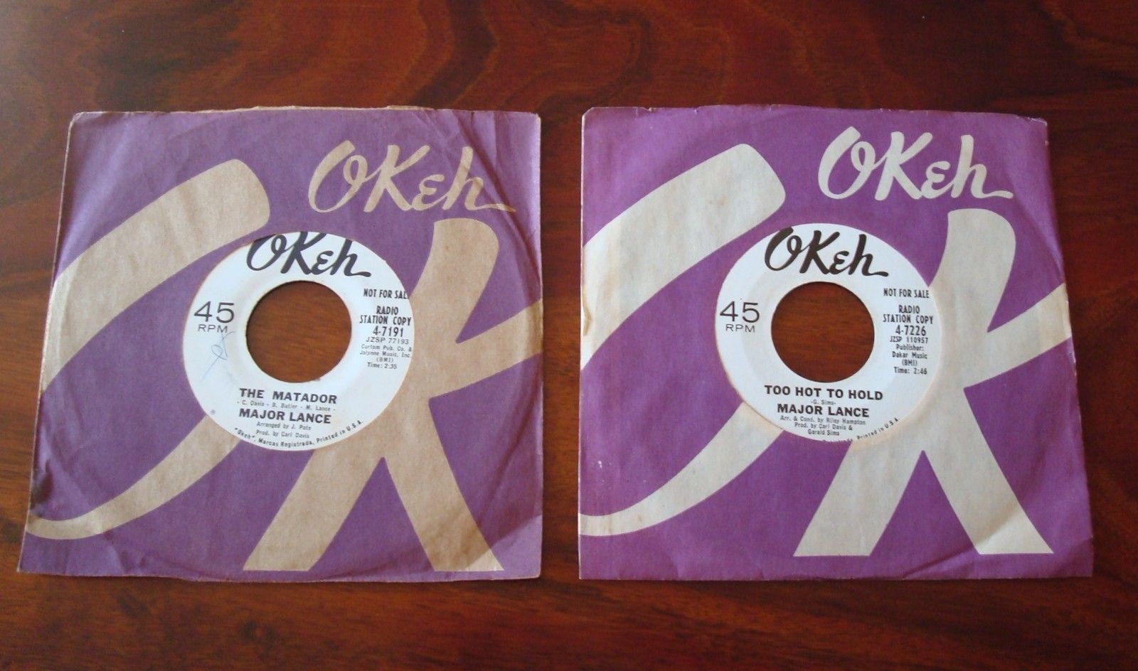 Major Lance. NM- 2 Okeh Promo 45 lot. The Matador. Too Hot To Hold