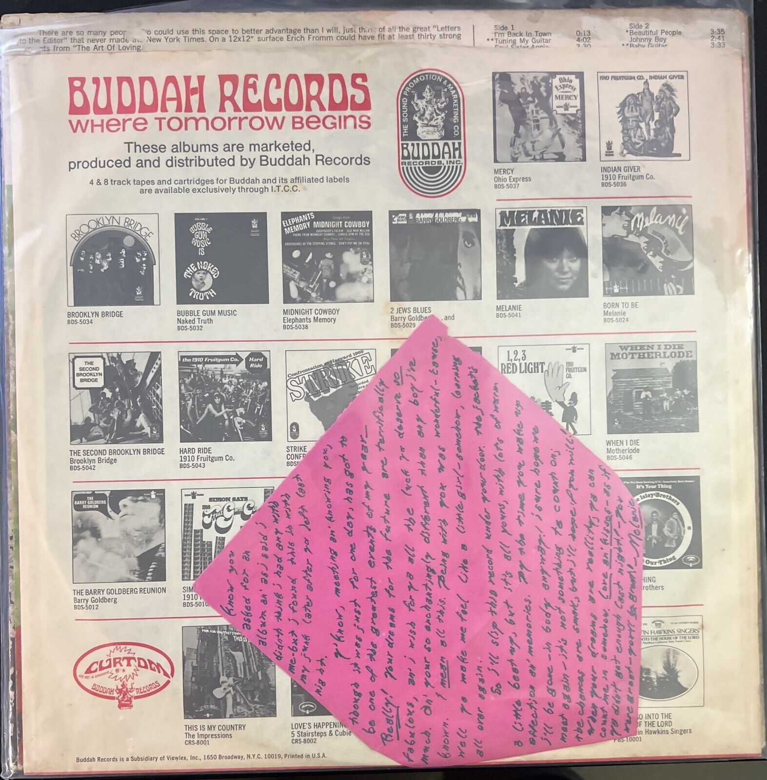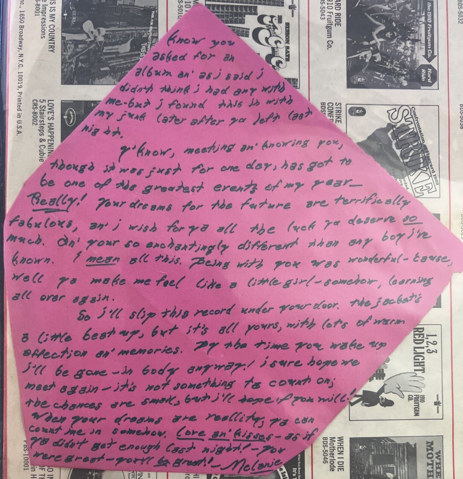 Melanie Safka LOVE LETTER & first Vinyl Record JSA COA ONE OF A KIND EXCLUSIVE