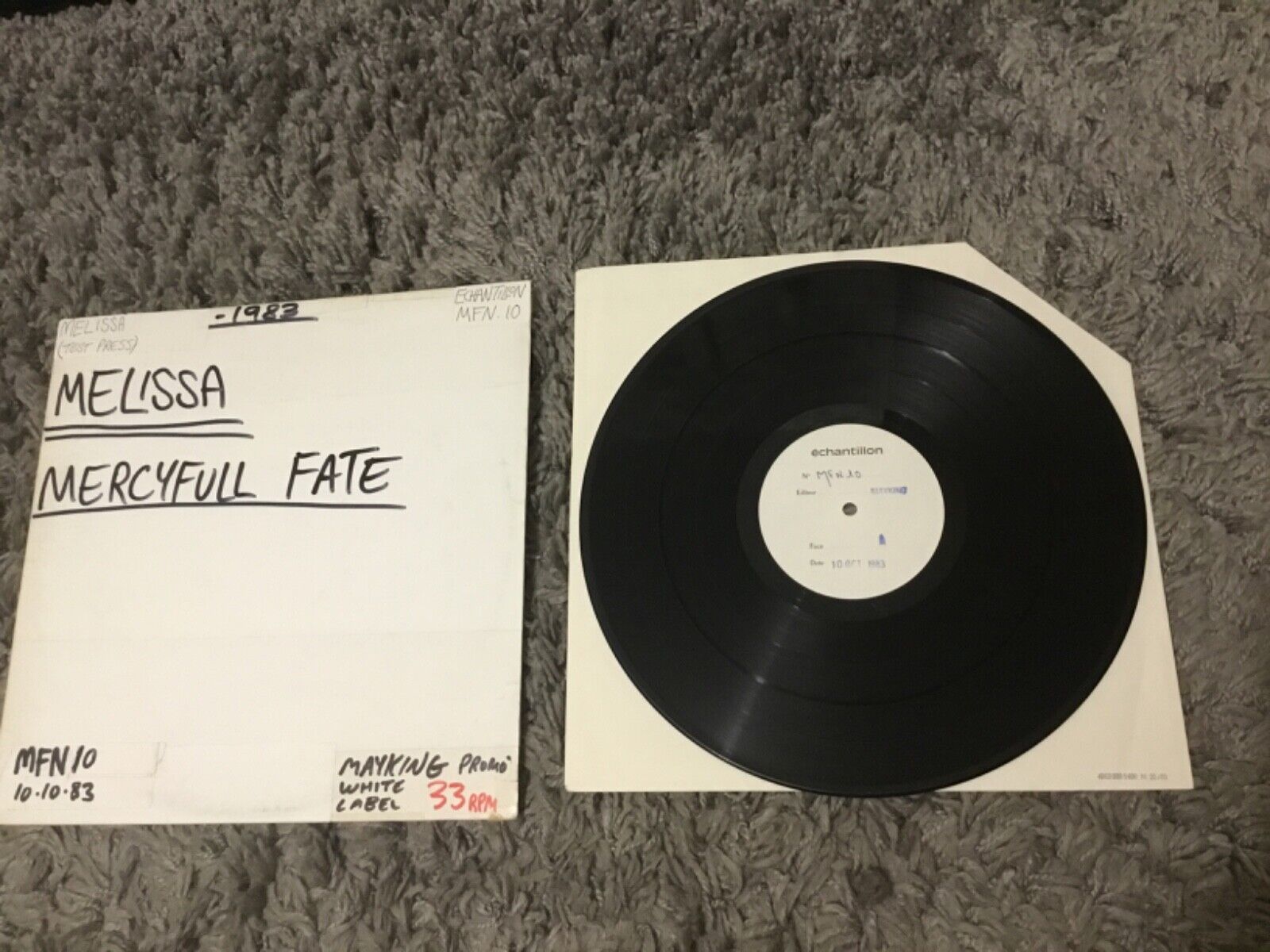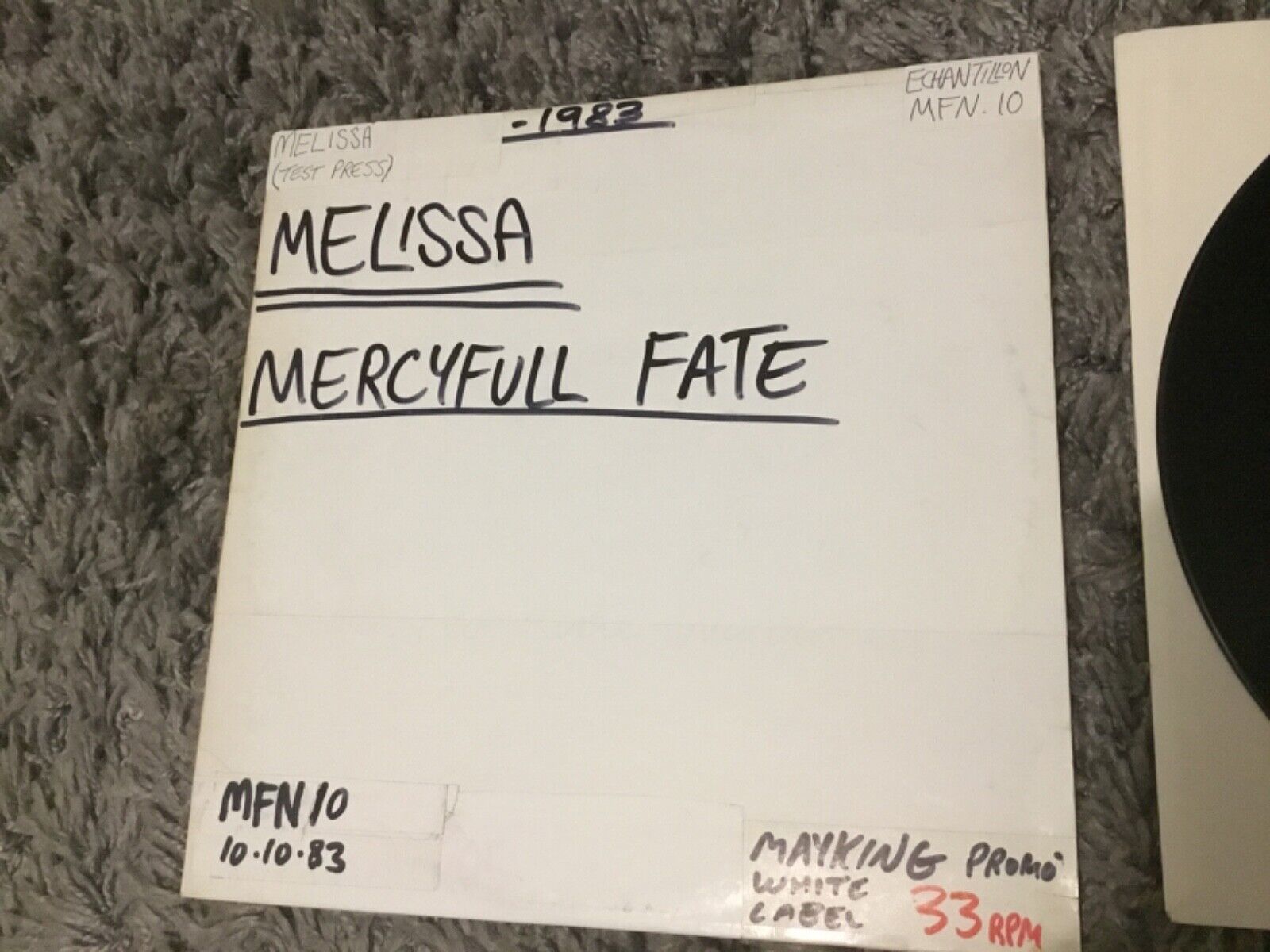 Mercyful Fate Melissa Lp from 1983. U.K./France vinyl Test Pressing for the original U.K. Music For Nations release. MFN10. Super rare item in near mint condition.