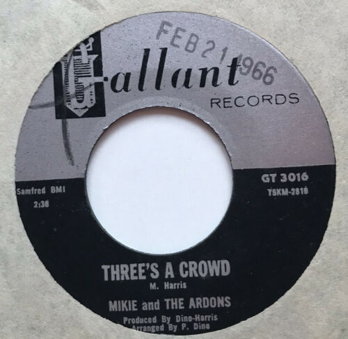 Mikie And The Ardons 45 Three’s A Crowd VERY RARE Sweet Soul