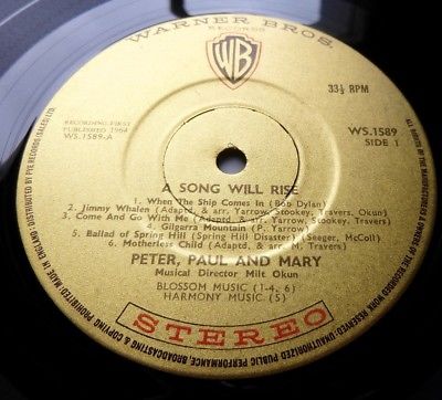 PETER, PAUL AND MARY A Song Will Rise 1964 UK WB 1st *STEREO* - LOOKS UNPLAYED