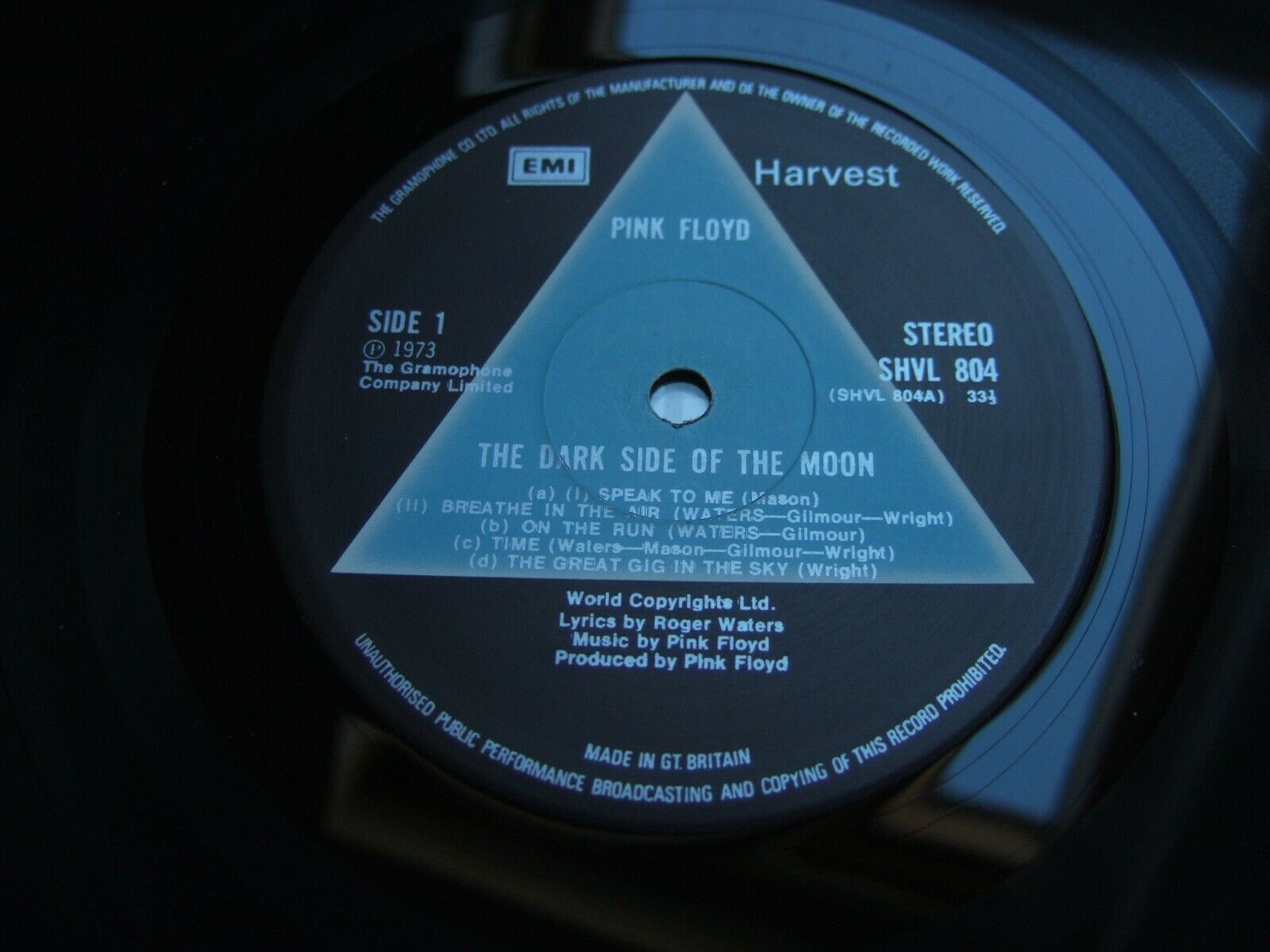 PINK FLOYD - DARK SIDE OF THE MOON - 1st A2/B2 SOLID BLUE HARVEST SHVL 804 EX/+