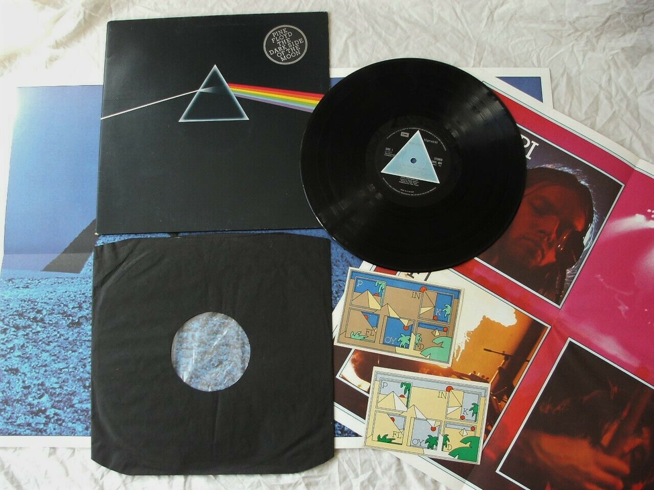 Posters: These are the original posters. They are the absolute earliest examples printed on fully matt paper and they are nearly impossible to find as a matching pair (the fully matt pyramid poster seems to be particularly hard to find). These original posters have never been on display and so have no pin-holes, sellotape, blu-tac etc. They have no tears, splits or damage, and minimal signs of handling, just some age-related discoloration on the two rear panels which are on the outside when the poster is folded. I think it would be almost impossible to find a better pair of original posters.
