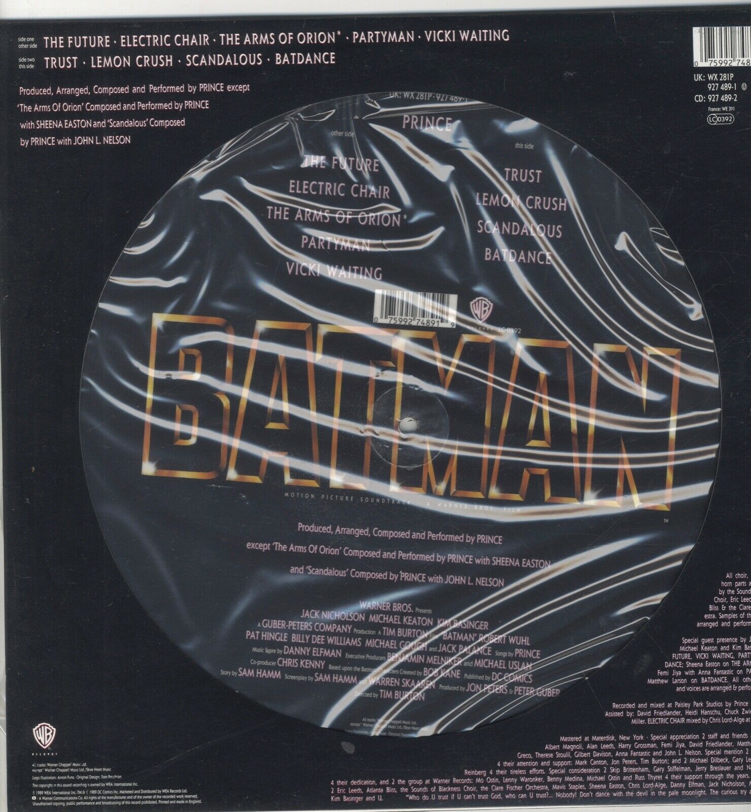 PRINCE - Batman OST ORIGINAL PICTURE DISC LP NEAR MINT DIE-CUT SLEEVE