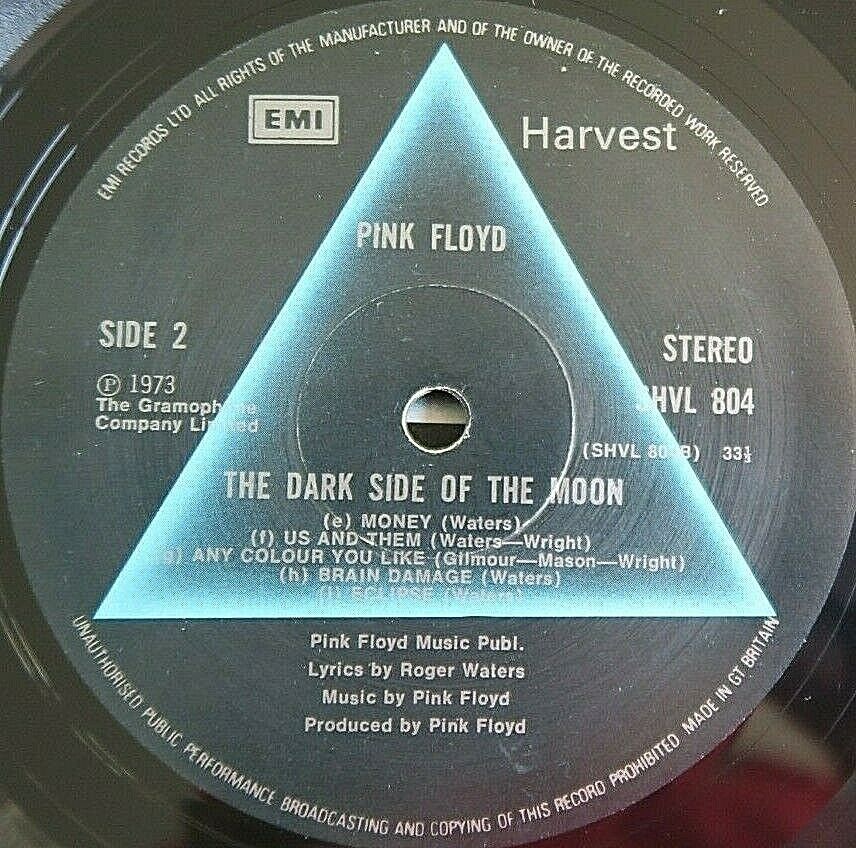 Pink Floyd Dark Side Of The Moon England UK pressing 12'' vinyl Lp SHVL 804 1973