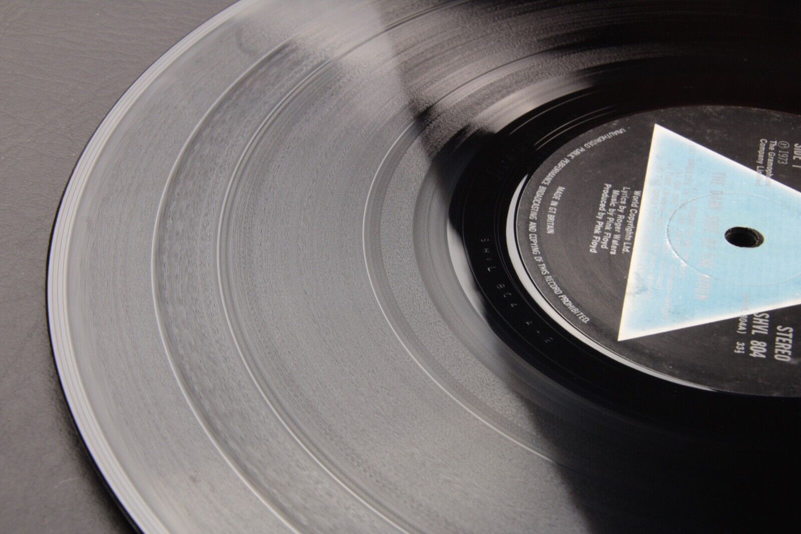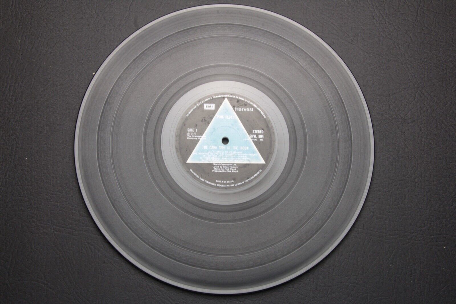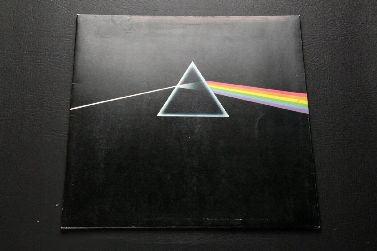 The vinyl is housed within the original 'midnight blue' tinged black gatefold sleeve. This copy is extremely rare in that it is without the DSOTM sticker to the front side. Contrary to common belief, this was placed on later copies in response to retailers complaining that customers did not know which album was the new Pink Floyd release that they had come to buy!
