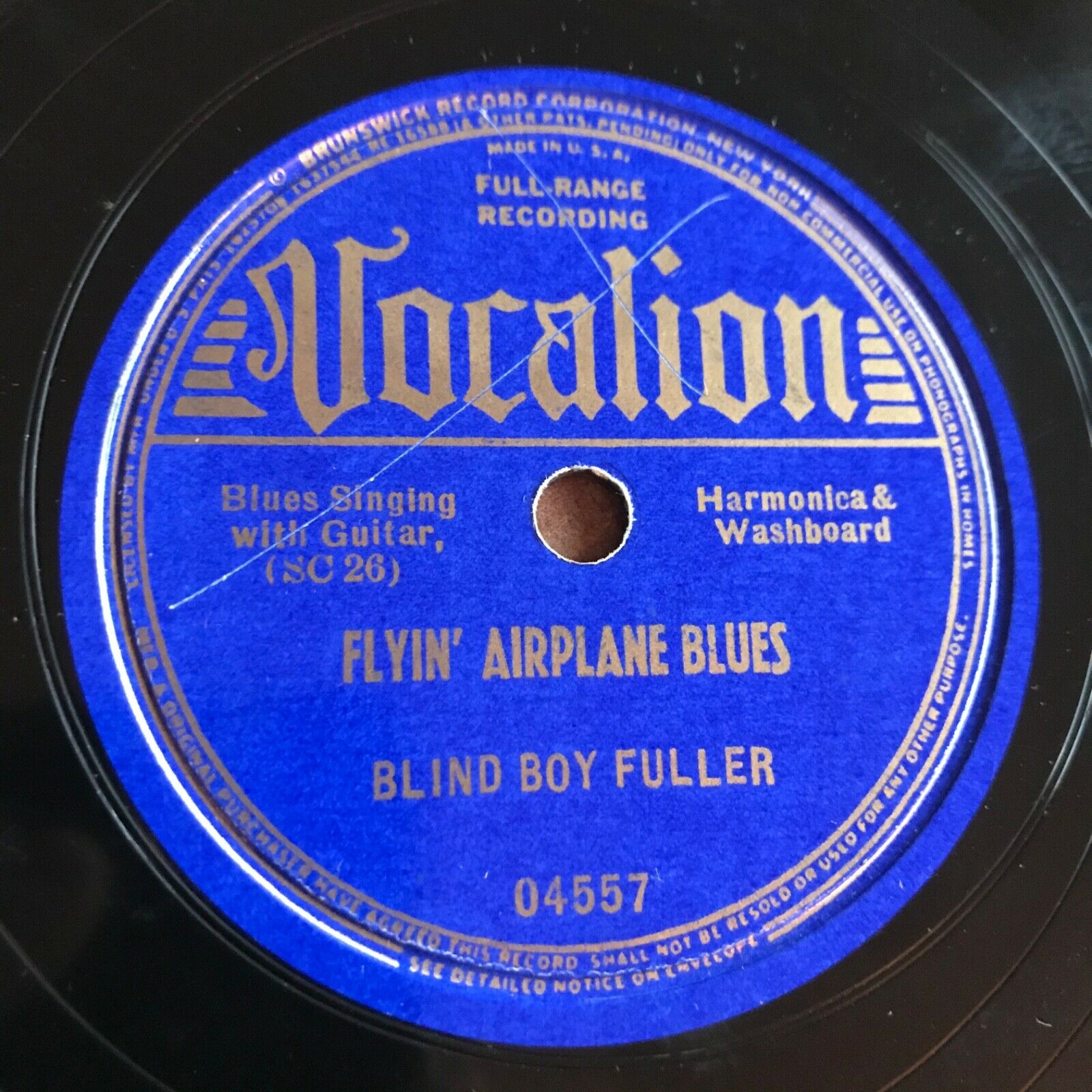 Pre-War Country Blues 78 BLIND BOY FULLER Vocalion 04557 in V++ Airplane HEAR