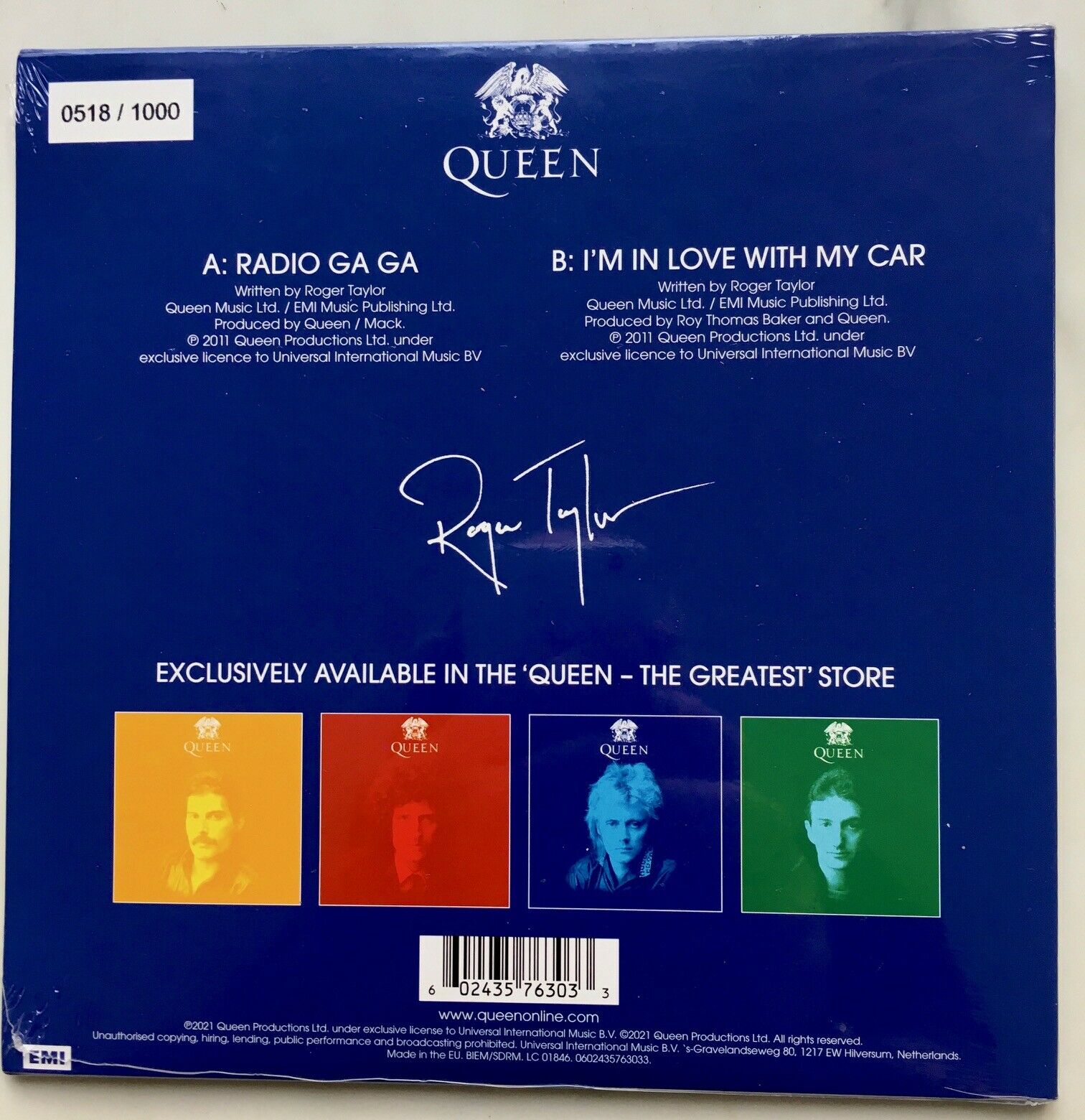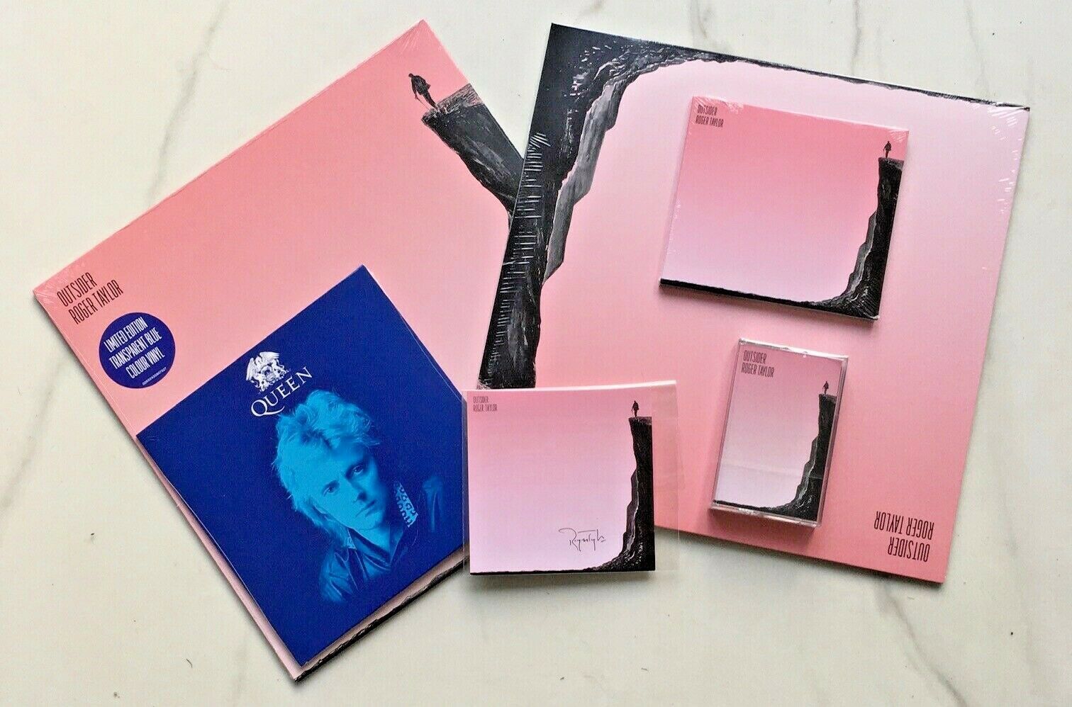 QUEEN ROGER TAYLOR MEGA BUNDLE CARNABY 7" SIGNED CARD BUNDLE + BLUE VINYL LP