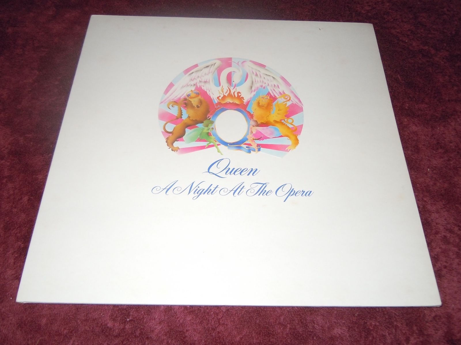 Queen’s A Night At The Opera 1975 authentic UK EMI Records EMTC103 first pressing special Blair’s cut YAX 5063- 2 YAX 5064- 2 with 3 die-cut inner sleeve and not the 4 with dedication to Jonathan Harris, boy racer to the end on track 3 on side 1.