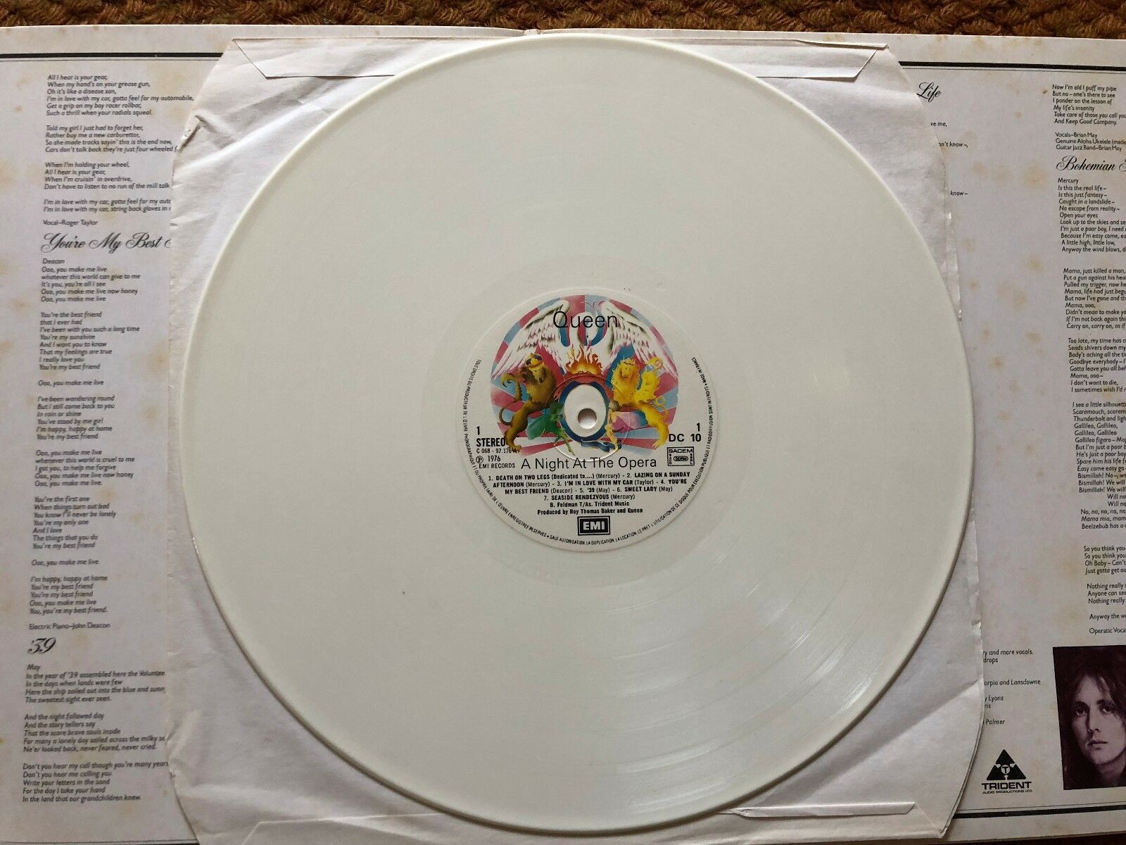 Queen A Night at the Opera White French Vinyl LP G/F Sleeve original inners