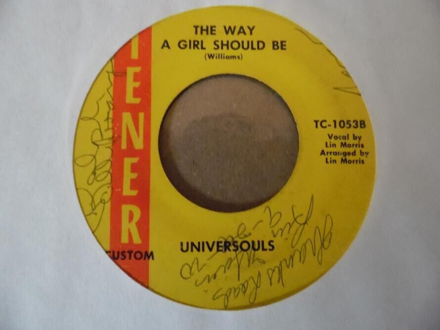 Very nice Funk 45 by the Universouls (Universals) on Tener TC-1053 ,"New Generation"/"The Way a Girl Should Be". The 45 is nice VG+/ VG++ with writing on B-side label. Buyer pays $5.00 shipping in the US, $20.00 to many international destinations. Please wait for invoice before sending payment. Thanks.