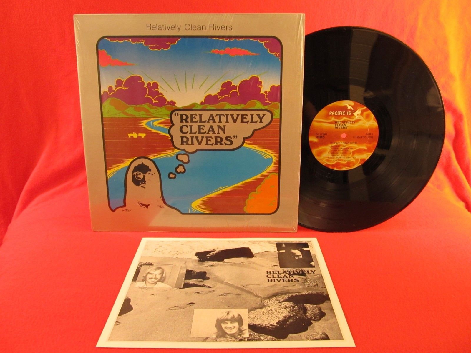 Relatively Clean Rivers: same 1976, USA/Pacific Is PC17601. Disc is M-, gatefold cover is M in the shrink wrap, it's never been folded open. Has the photo insert. TOP shape here on the best California private LP of the 1970s; totally killer ex-Beat Of The Earth eastern folk psych & rural rock with a jaw-dropping headshop-style art cover printed in silver and red and purple and gold that reminds me of the first Chocolate Watch Band LP. This album is one of the truly great American private presses; along with Anonymous: Inside The Shadow it just continues to reveal more magic with the years and I just can't imagine that I'll ever tire of it. Based on its popularity with collectors all over the world, there's a good chance that this LP will wind up being one of your favourites. Perfect original copy, direct from the reclusive genius behind the project. Check out a track on YouTube via this link: https://www.youtube.com/watch?v=z-oqwyX2t_M