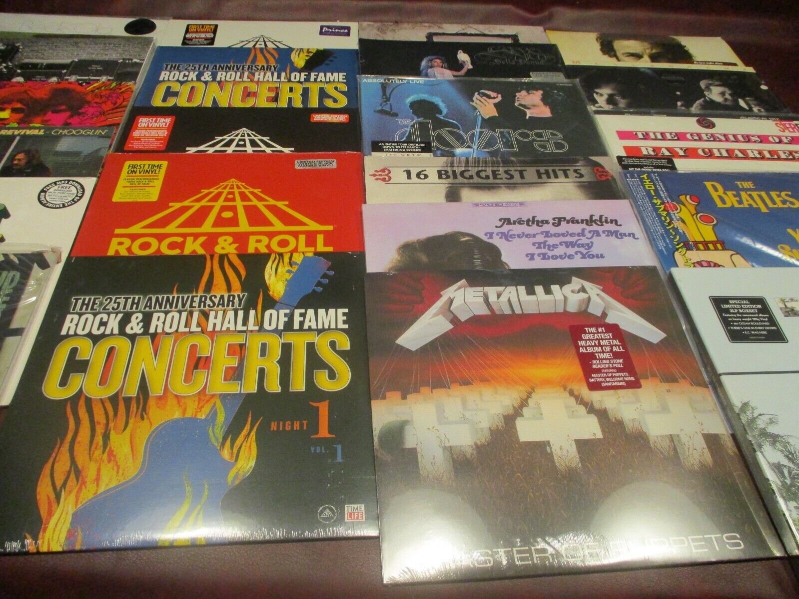ROCK N ROLL HALL OF FAME COLLECTION OF FIVE VARIOUS ROCK N ROLL HALL OF FAME VOLUMES WITH CORRESPONDING ARTISTS FROM EACH VOLUME WITH INDIVIDUAL ALBUMS FROM EACH ARTIST. MANY TITLE TREMENDOUSLY RARE OUT OF PRINT PRESSING.