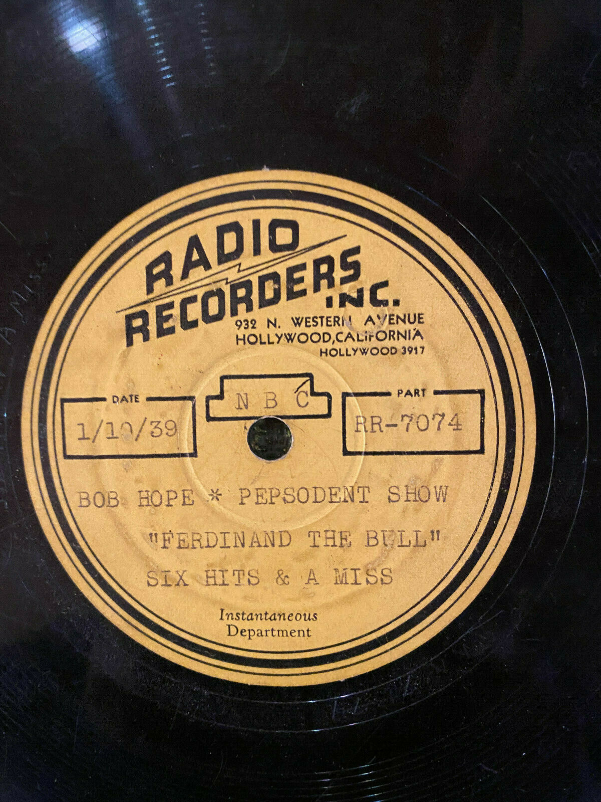 Radio Recorders BOB HOPE PEPSODENT SHOW 6 Hits & A Miss FDR JONES 1939 78rpm