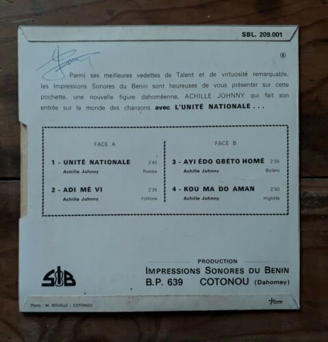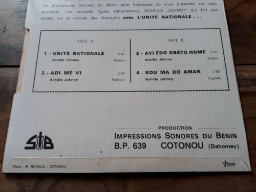 Rare 45 t vinyle EP african Dahomey Impressions Sonores du Benin Achille Johnny