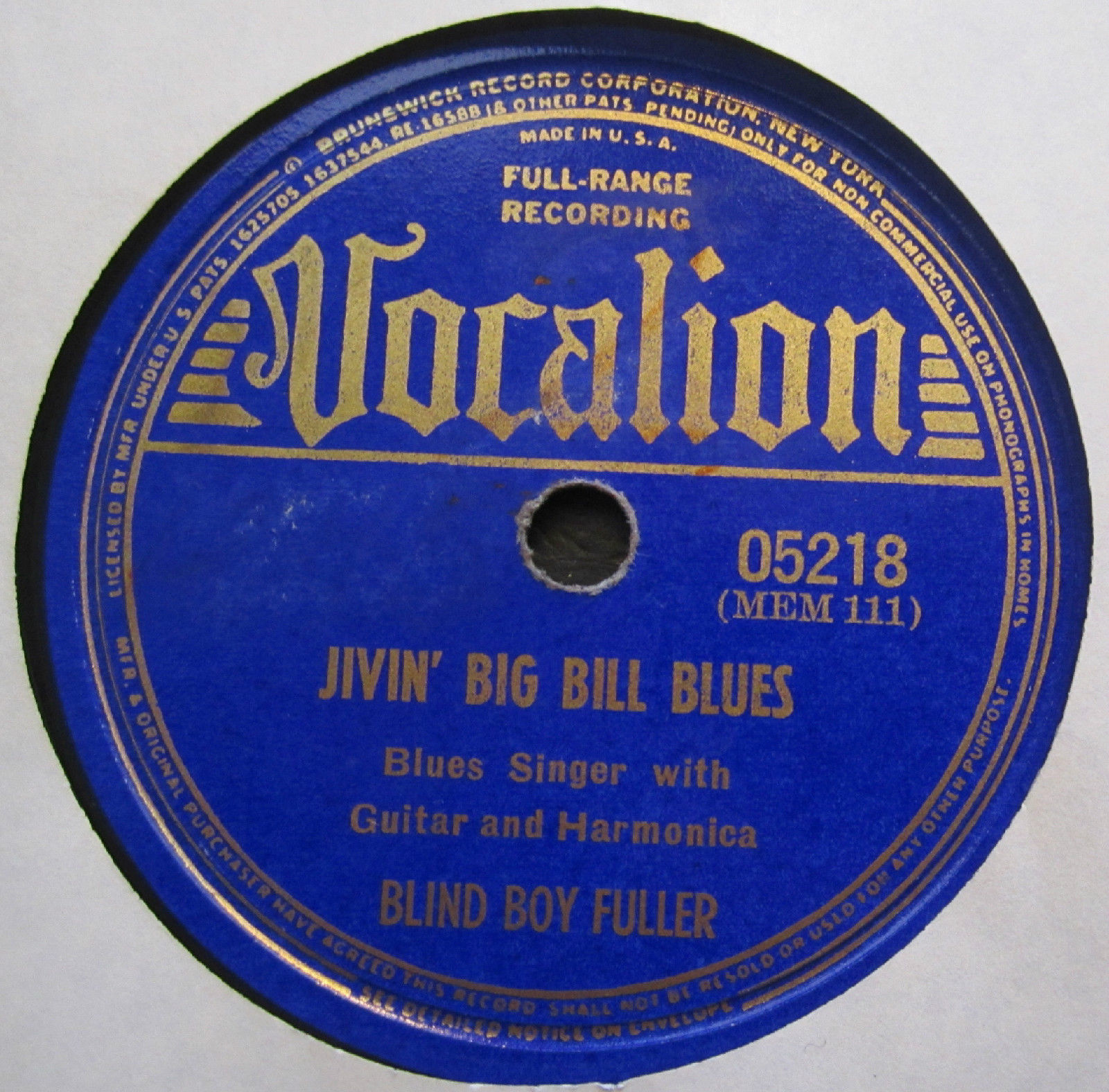 Rare BLUES 78-BLIND BOY FULLER "JIVIN' BIG BILL BLUES" 1939 Vocalion 05218 E-
