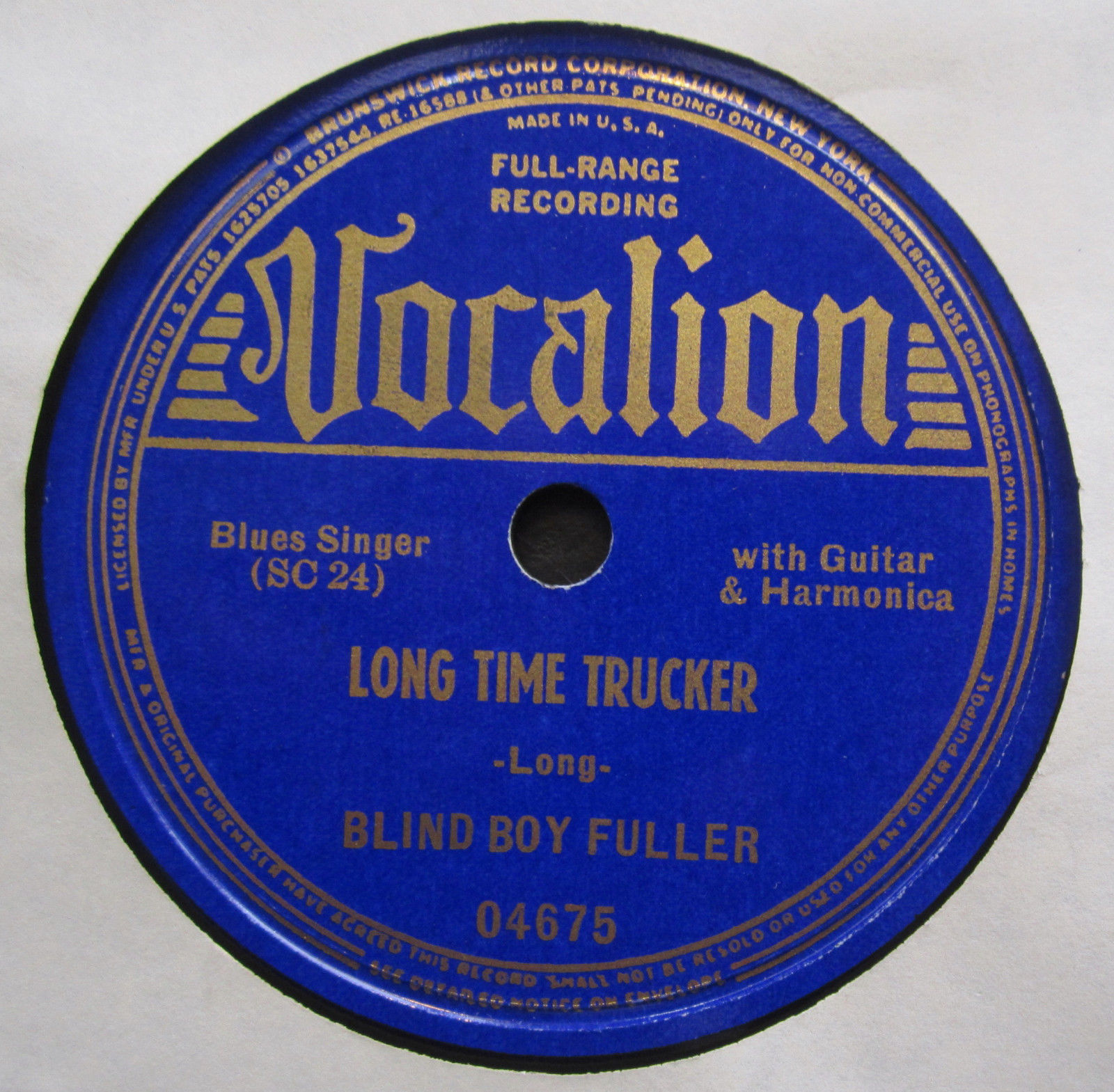 Rare BLUES 78-BLIND BOY FULLER "LONG TIME TRUCKER" 1938 Vocalion 4675 E-