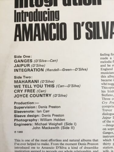 Rare Jazz Vinyl LP INTEGRATION Amancio D'Silva - Columbia (1969) SX 6322 - 1U 1U