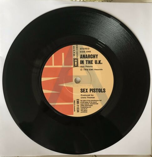 SEX PISTOLS - ANARCHY IN THE UK ORIGINAL AUSTRALIAN 7” “A” LABEL PROMO VINYL SINGLE IN BEAUTIFUL CONDITION.