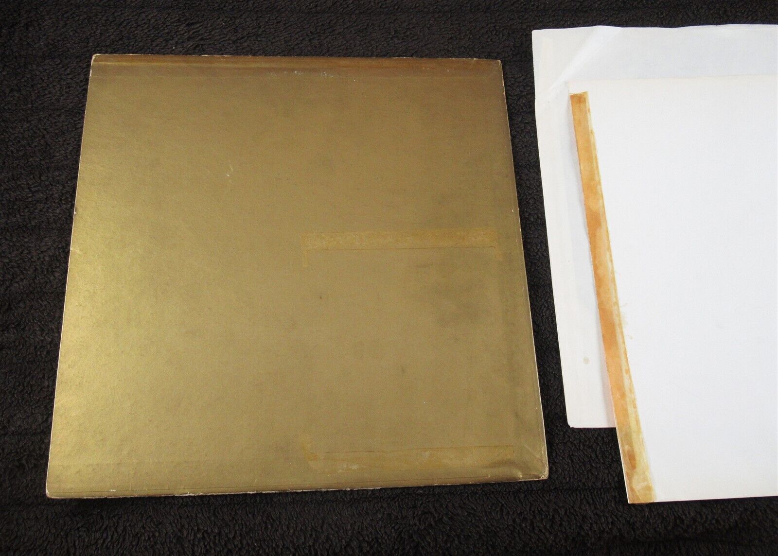 Sleeve: As stated, the back cover Information Paper Insert is missing. It comes with its original front cover Paper Insert. This, over time, has come unstuck from the front cover & is now loose. There are two long clear tape strip stains on the plain gold front sleeve (see photos). This corresponds with the two clear tape strips on the rear blank side of the front cover paper insert. There are a couple of small clear tape strip stains on the rear sleeve too. These are smaller in size. As stated, the rear sleeve paper insert is sadly missing.